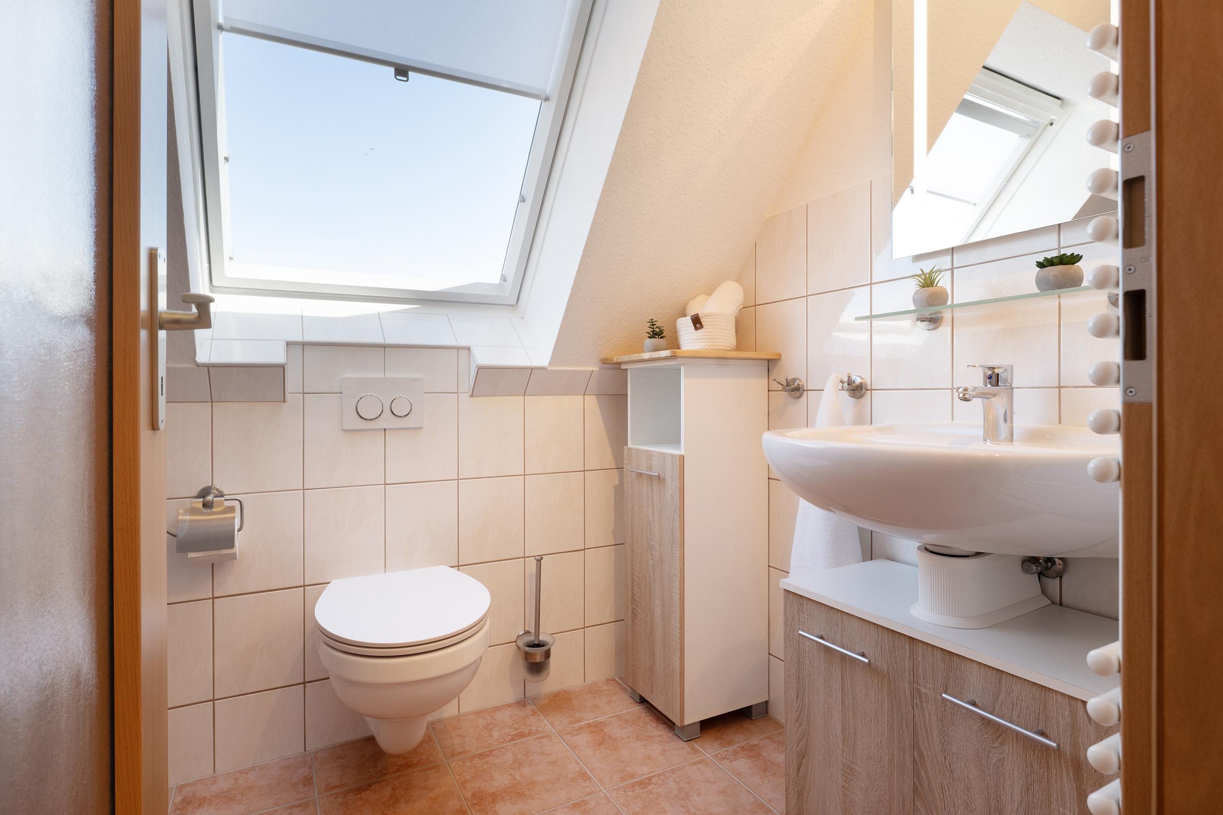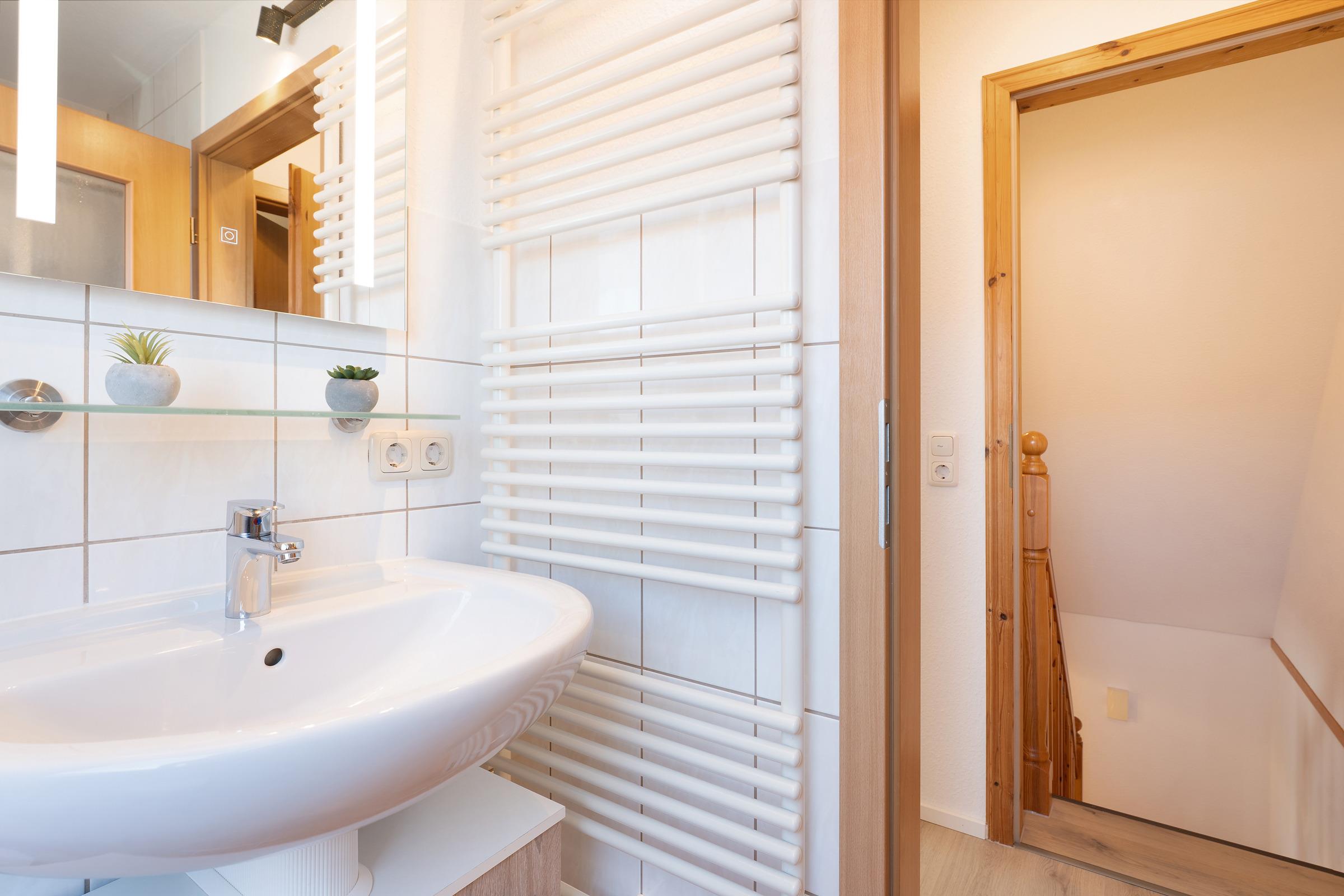 Die modernen Badezimmer sind eines mit Badewanne und eines mit Dusche ausgestattet. Ein beheizbarer Handtuchhalter und Haartrockner runden das Angebot ab.