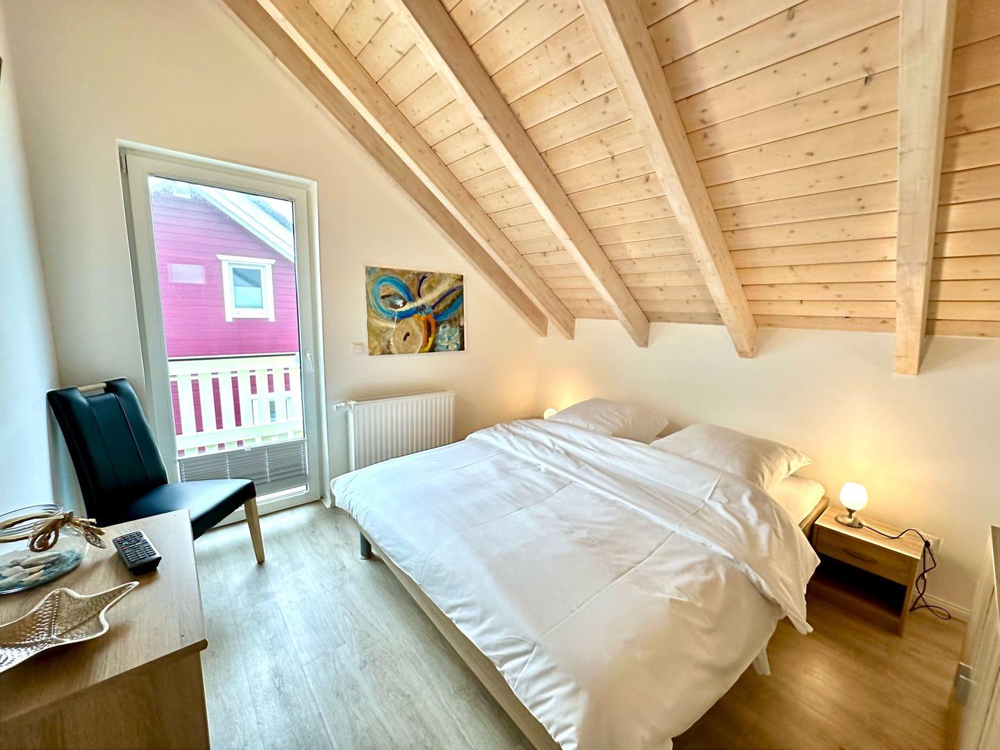 Im ersten Stock haben Sie gleich von zwei der drei Schlafzimmer (alle Matratzen haben die Abmessung 90x200 cm) direkten Zutritt zum Balkon und können dort direkt nach dem Aufstehen den Blick über die Wiesen bis hin zur Ostsee schweifen lassen. Das Haus verfügt über 4 TV-Geräte. Für die kleinen Gäste stehen ein Kinderhochstuhl und ein Kinderreisebett kostenfrei bereit. Direkt vor dem Haus stehen Ihnen 2 PKW-Außenstellplätze zur Verfügung. Ihre Fahrräder können im Schuppen abgestellt werden. Bitte haben Sie Verständnis, dass es sich bei diesem Ferienhaus um ein Nichtraucherdomizil handelt. Der WLAN-Anschluss ist selbstverständlich inklusive. Sie möchten Ihren Hund mitbringen? Kein Problem! Ein Hund ist herzlich willkommen!
