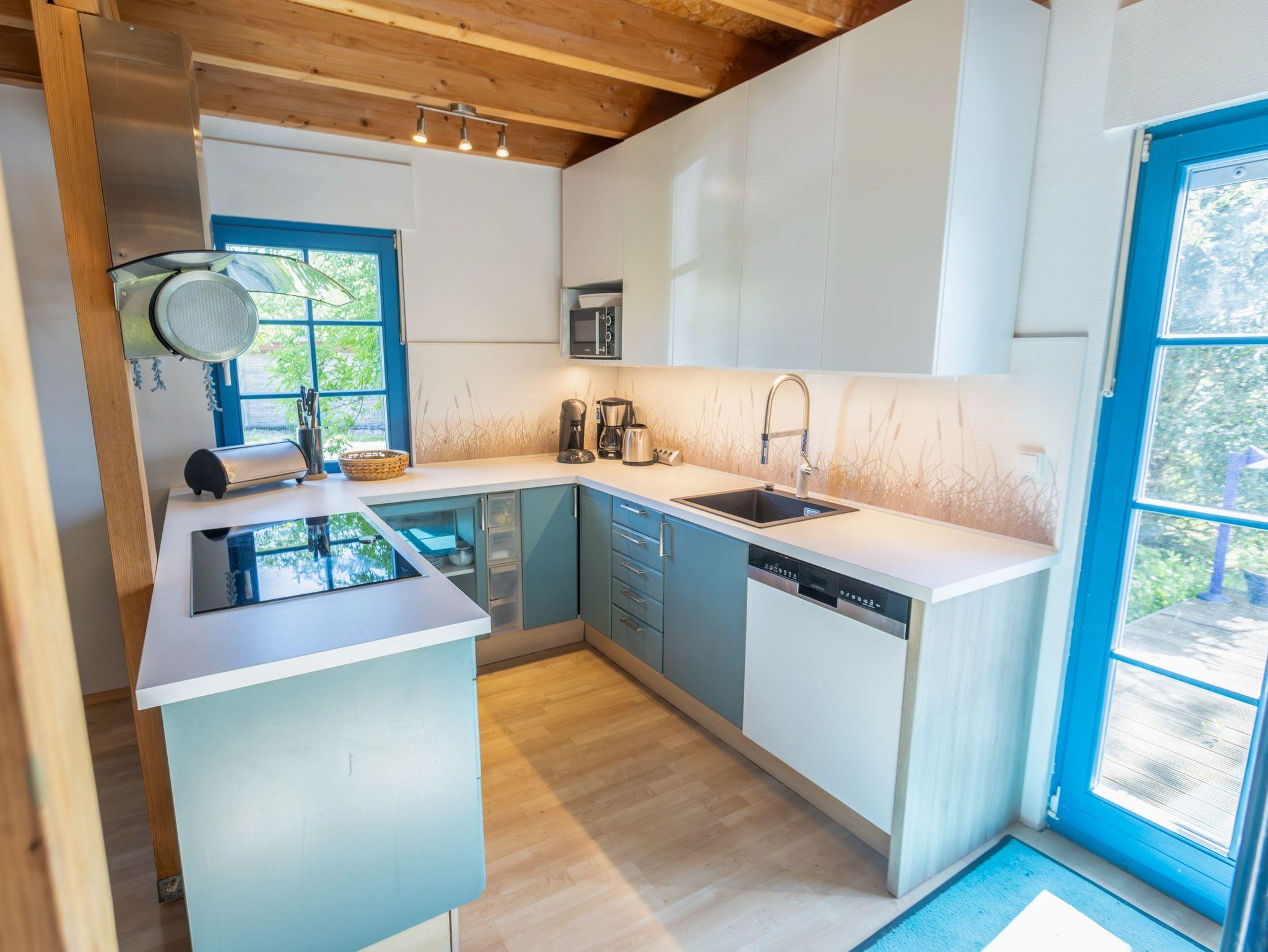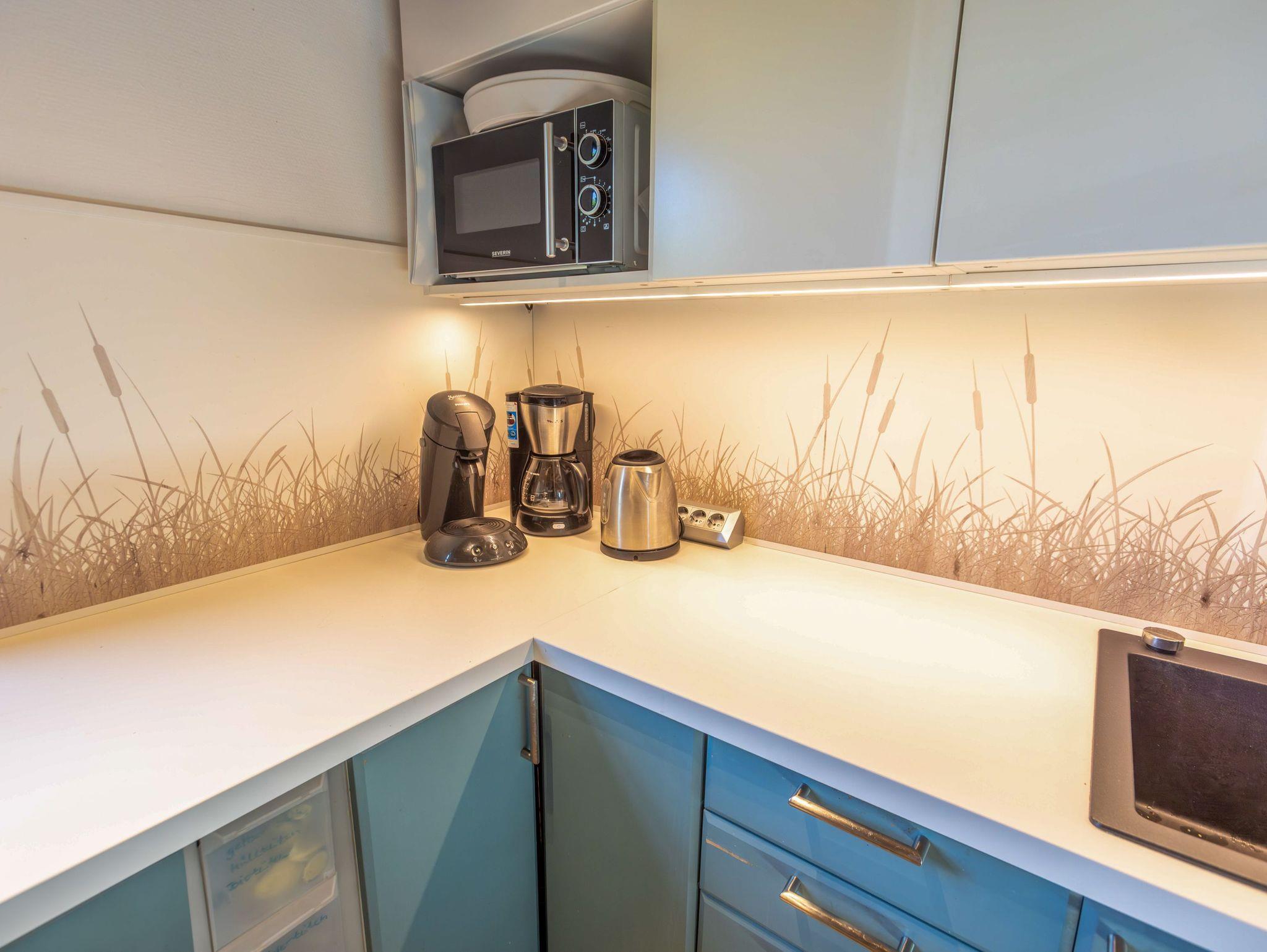 Das Ferienhauses Tüdelnest erwartet bis zu 8 Personen mit seiner hellen und freundlichen Atmosphäre - perfekt für einen Urlaub mit Familie oder Freunden. Im Erdgeschoss bildet der großzügige, offene Wohnbereich das Herzstück des Hauses. Die gemütliche Sitzecke mit Sofa, Sesseln und Flachbild-TV lädt zum Ausruhen ein, besonders wenn der Kamin für angenehme Wärme sorgt und den Raum in ein wohliges Licht taucht. Direkt angeschlossen befindet sich der große Essbereich mit ausziehbarem Tisch - ideal für gemeinsame Mahlzeiten oder Spieleabende. Eine kleine Spielesammlung steht ebenfalls bereit. Die offene Küche ist umfangreich ausgestattet und lässt kaum Wünsche offen. Neben einem großen Kühl- und Gefrierschrank und einem Herd findest du eine Mikrowelle, Kaffeemaschinen, Wasserkocher, Toaster, Heißluftfritteuse, ein Raclette-Set sowie reichlich Geschirr und Kochutensilien.