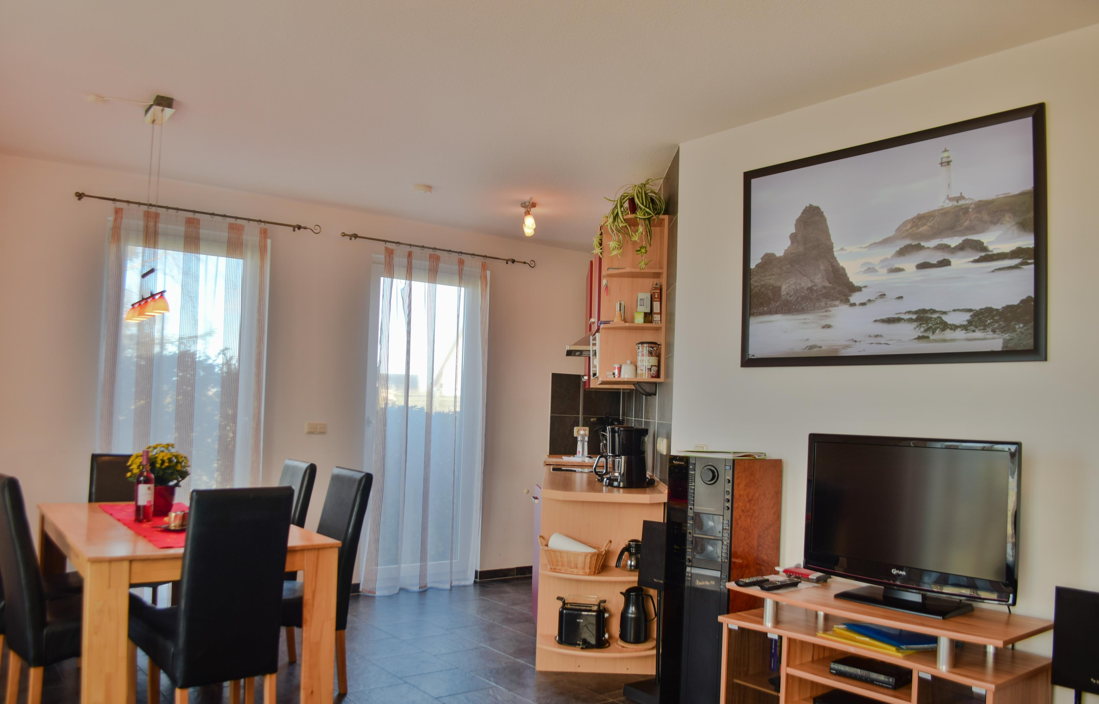 Zur stilvoll eingerichteten und vollständig ausgestatteten Unterkunft gehören ein helles, gemütliches Wohnzimmer mit offener Einbauküche, ein Badezimmer mit Dusche, WC und Sauna sowie ein weiteres Bad mit Badewanne und WC. Zwei behagliche Schlafzimmer bieten Schlafmöglichkeiten für 4 Personen, zusätzlich gibt es im Alkoven ein Doppelbett für 2 Personen (für ältere Gäste weniger geeignet). Im Erdgeschoss sorgen elektrische Rollläden für zusätzlichen Komfort. Das Ferienhaus verfügt weiterhin über Insektenschutzgitter im Erd- und Obergeschoss.