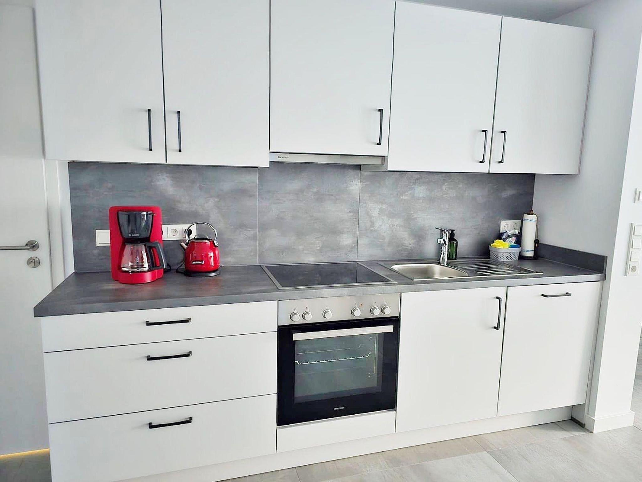 Mit einer Wohnfläche von ca. 65 qm laden wir Sie herzlich in unsere neu gebaute und moderne Ferienwohnung ein. Der offene Wohnraum umfasst einen großzügigen Wohn-, Schlaf- und Essbereich und eine offene, gut ausgestattete Küche. Vom Wohn-, Schlaf- und Essbereich haben Sie direkten Zugang zur überdachten Terrasse mit Sitzgarnitur, auf der Sie den Abend bei einem Glas Wein ausklingen lassen können. Darüber hinaus gibt es ein geräumiges Badezimmer mit ebenerdiger Dusche und WC.