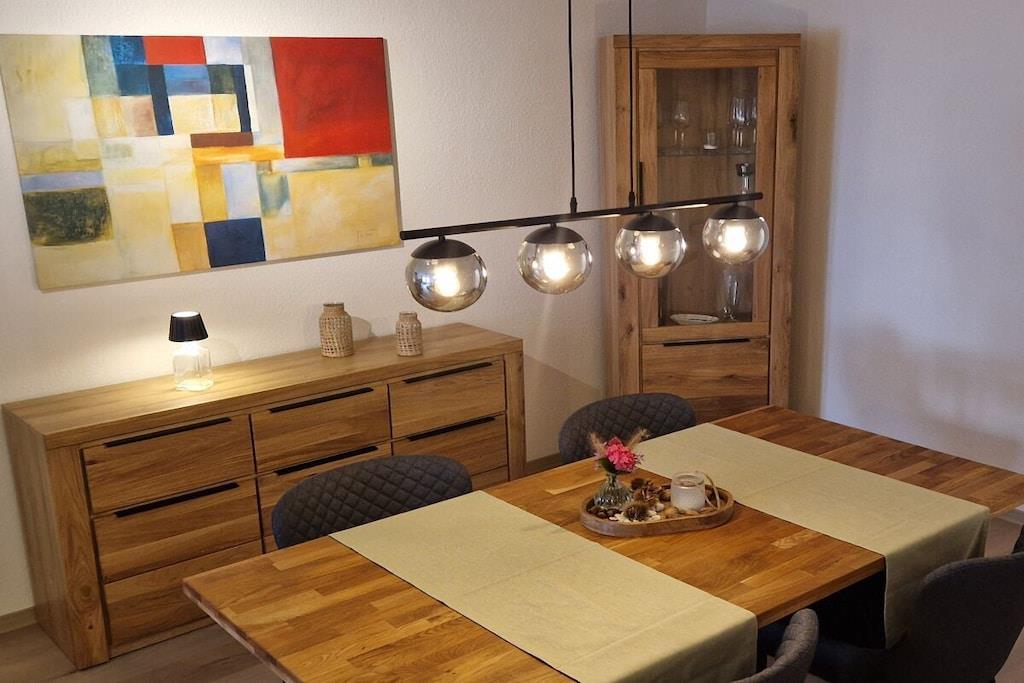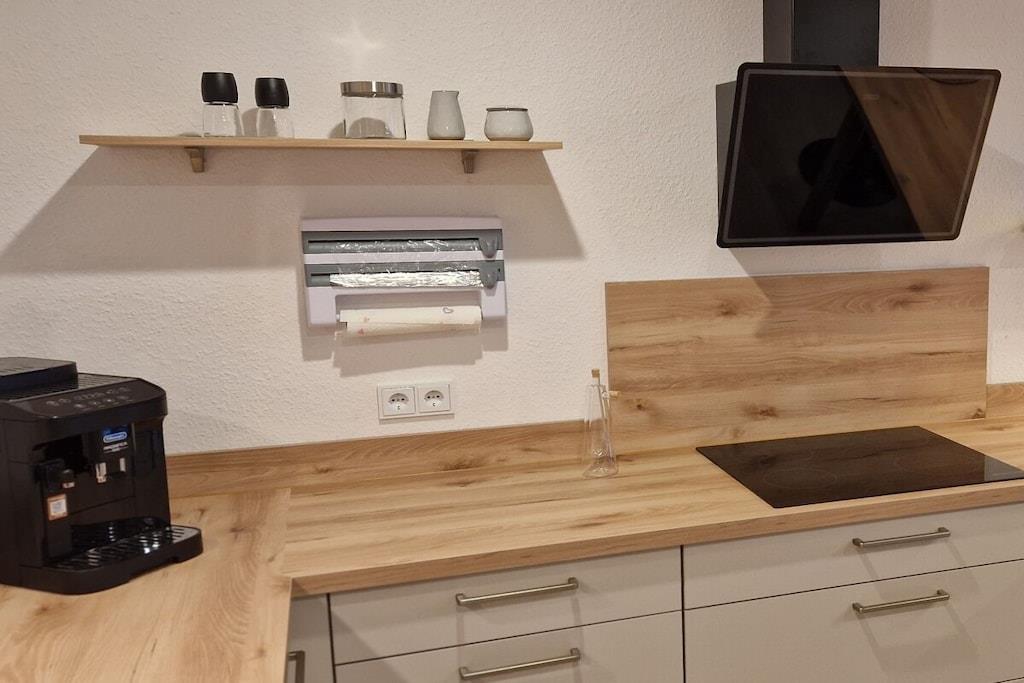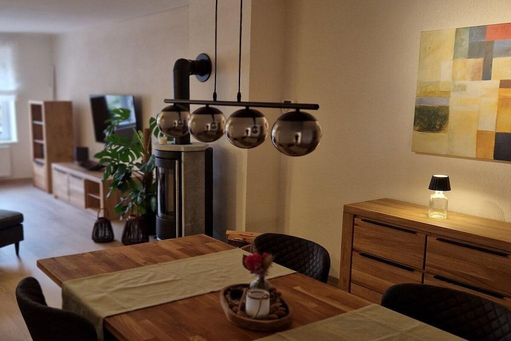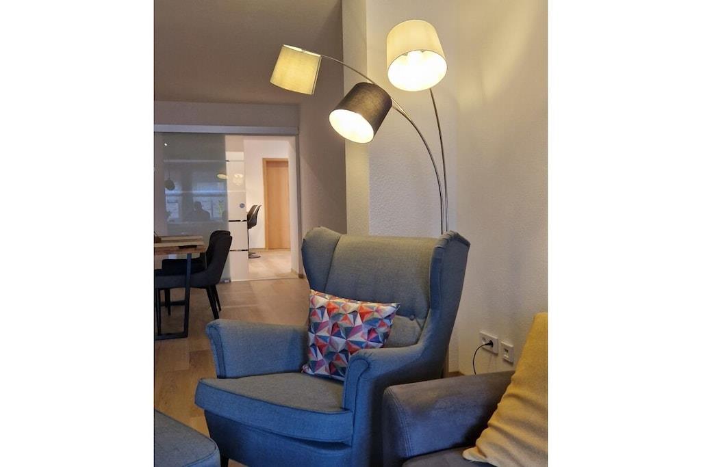 Lejligheden, cirka 98 kvadratmeter, ligger i stueetagen af vores fuldstændig moderniserede bondehus (bygget i 1896). Den meget rummelige ferielejlighed består af en stue og spisestue med brændeovn til køligere dage og hyggelige timer ved den knitrende ild, komfortable læsestole, en sofa og et 55" smart-tv; det nye, moderne køkken med morgenmadsbar er fuldt udstyret; to soveværelser: et med en 1,80 x 2,00 cm boxmadras og tv, og et med en køjeseng (underseng 140 x 2,00 cm, overseng 90 x 2,00 cm) – også velegnet til ældre børn; en gang; et badeværelse med bruser, badekar og toilet; et separat toilet; og en stor, delvist overdækket, skyggefuld terrasse med siddepladser, en liggestol og en gasgrill. Parkering er tilgængelig foran huset.