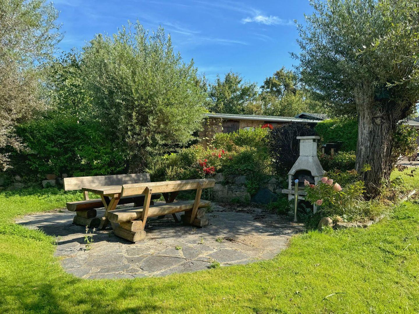 Das Reihenhaus steht auf einem ca. 5.000 qm großen, gepflegten und eingezäunten Grundstück, welches von allen Gästen genutzt werden kann. Für jeden ist etwas dabei: ein großer Spielplatz mit Sandkasten, Schaukeln, Rutsche und Kletterwand; ein separater Sandkasten für die Kleinsten; eine Obstwies; ein großer Teich; viel Rasenfläche zum Erholen und für sportliche Aktivitäten sowie viele Möglichkeiten zum Verweilen.