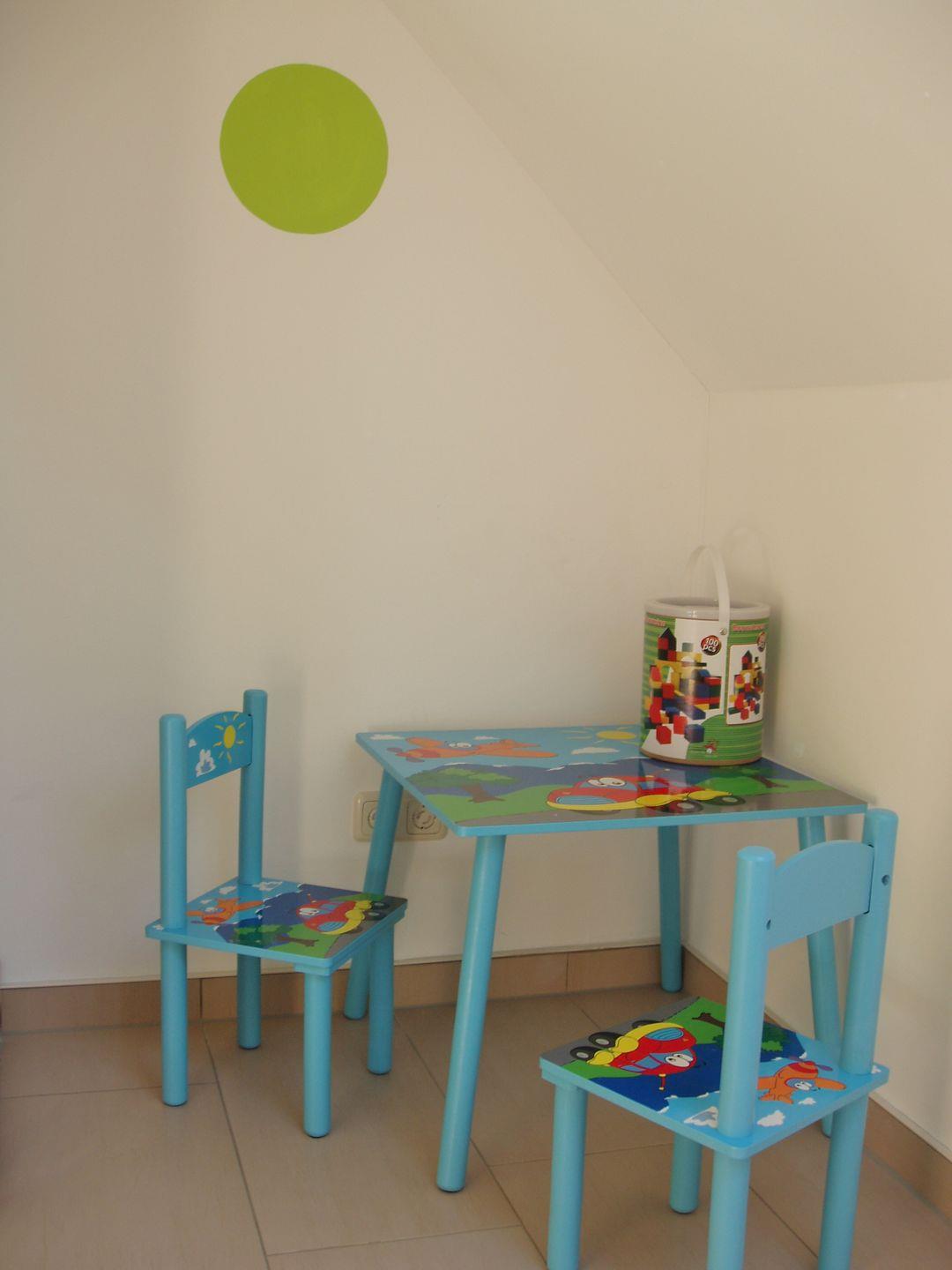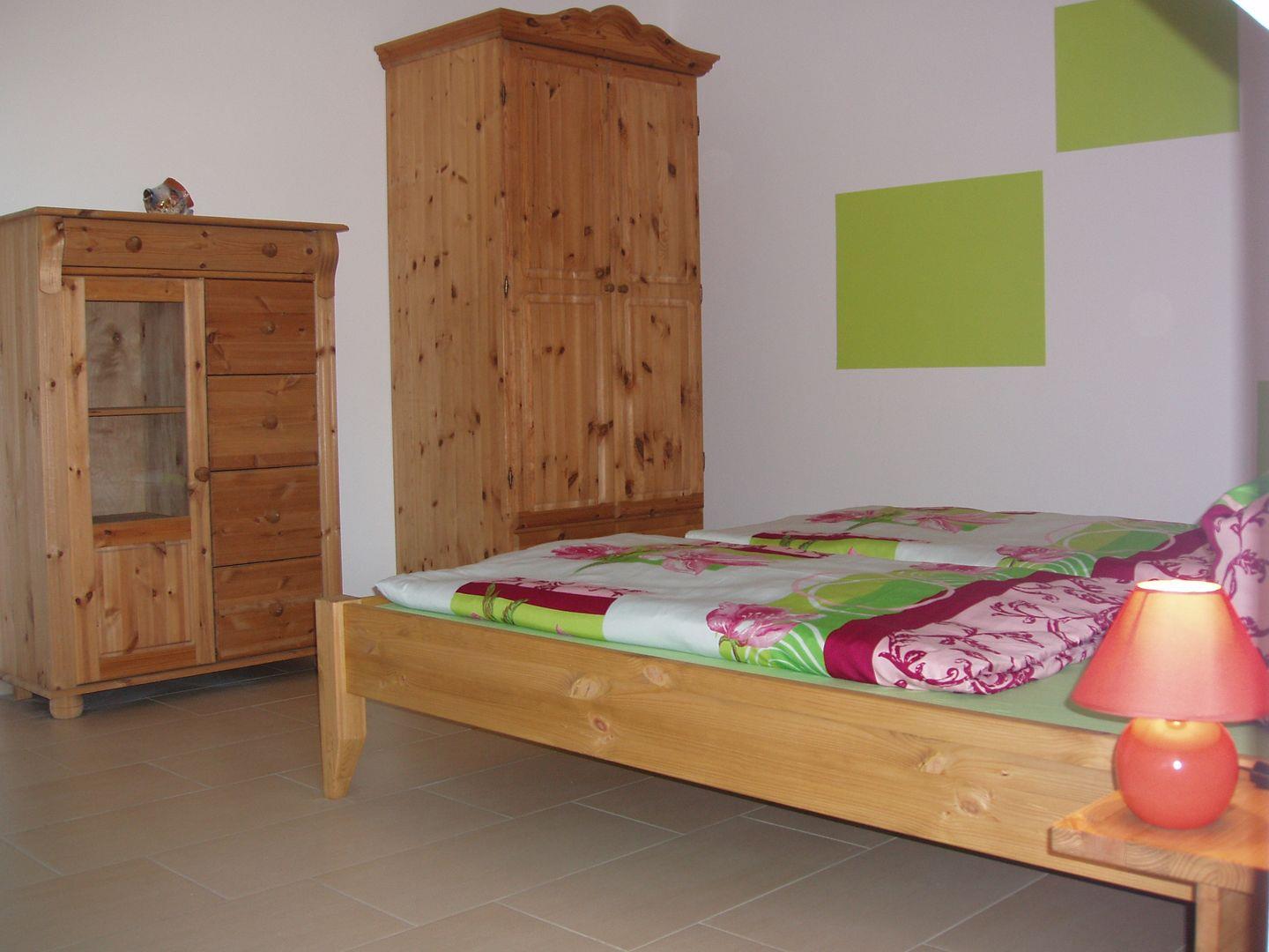 Es gibt ein Schlafzimmer mit Doppelbett und ein zweites Schlafzimmer bzw. Kinderzimmer mit einem Etagenbett. Dieses Etagenbett hat drei Ebenen /Liegeflächen (unter dem unteren Bett befindet sich noch ein weiteres gleich breites Bett zum ausziehen.) Die Kinder haben also viele Schlafmöglichkeiten und auch ein Elternteil kann sich mal mit hinein kuscheln, da die beiden unteren Liegeflächen breiter sind als das obere Bett. Im Wohnzimmer gibt es auf einer Couch mit Bettfunktion eine weitere Schlafmöglichkeit.