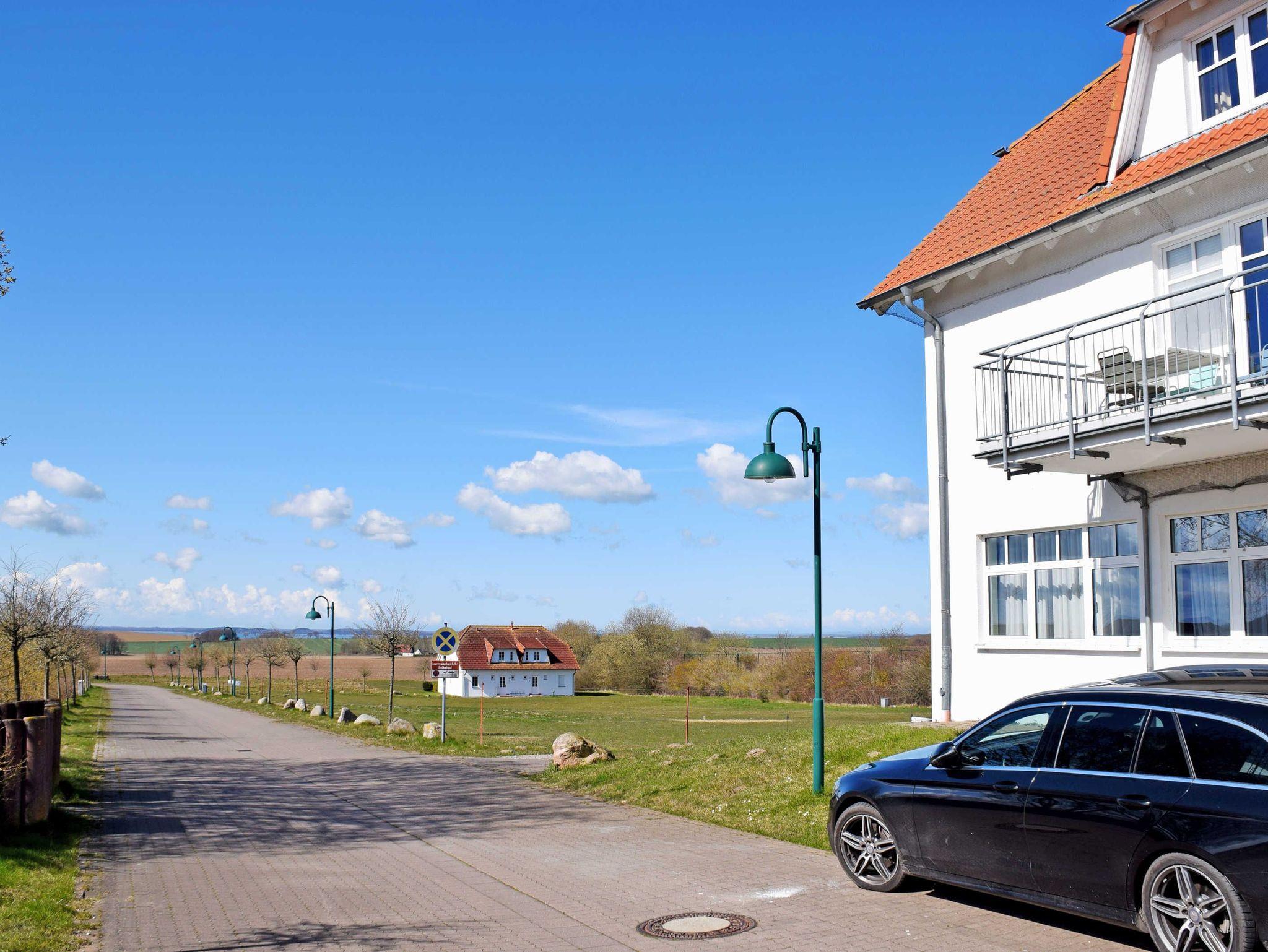 Die modern eingerichtete Wohnung befindet sich in ruhiger Lage im Erdgeschoss eines Wohnhauses, auf dessen anderen Seite sich auch ein Friseur und eine Pizzeria befinden. Vor der Wohnung können zur Wohnung gehörende Gartenstühle und ein Tisch aufgestellt werden. Hinter dem Haus gibt es viel Platz auf einer großen Wiese mit weitem Ausblick in Landschaft und auf die Boddenküste der Ostsee.