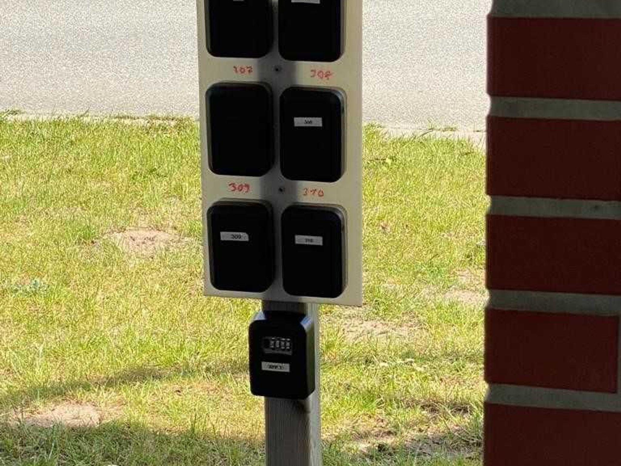 Vor der Wohnung können zur Wohnung gehörende Gartenstühle und ein Tisch aufgestellt werden.