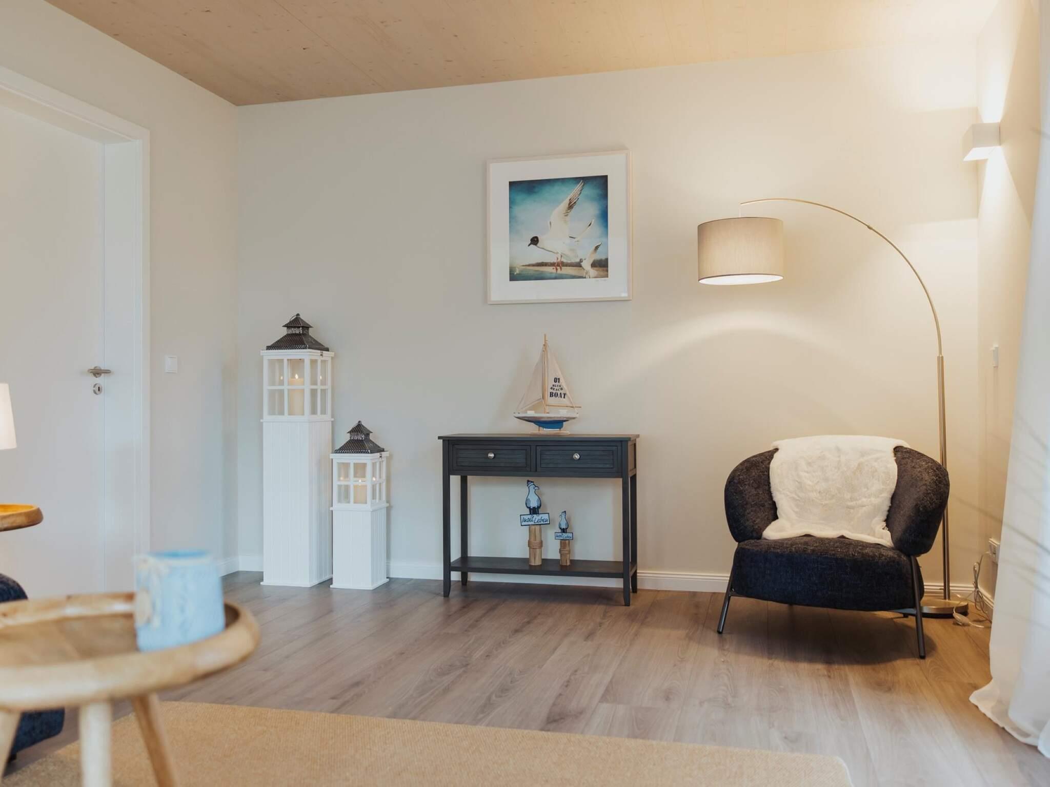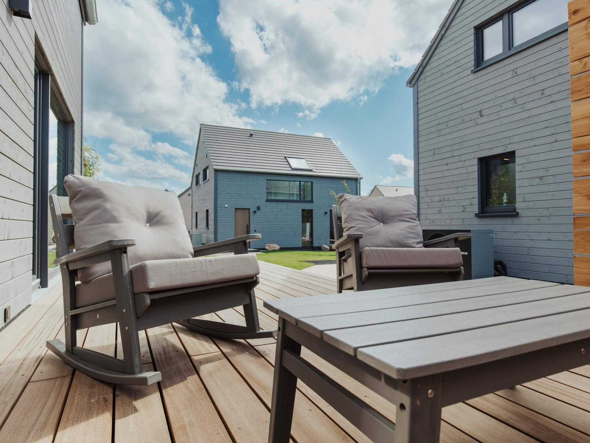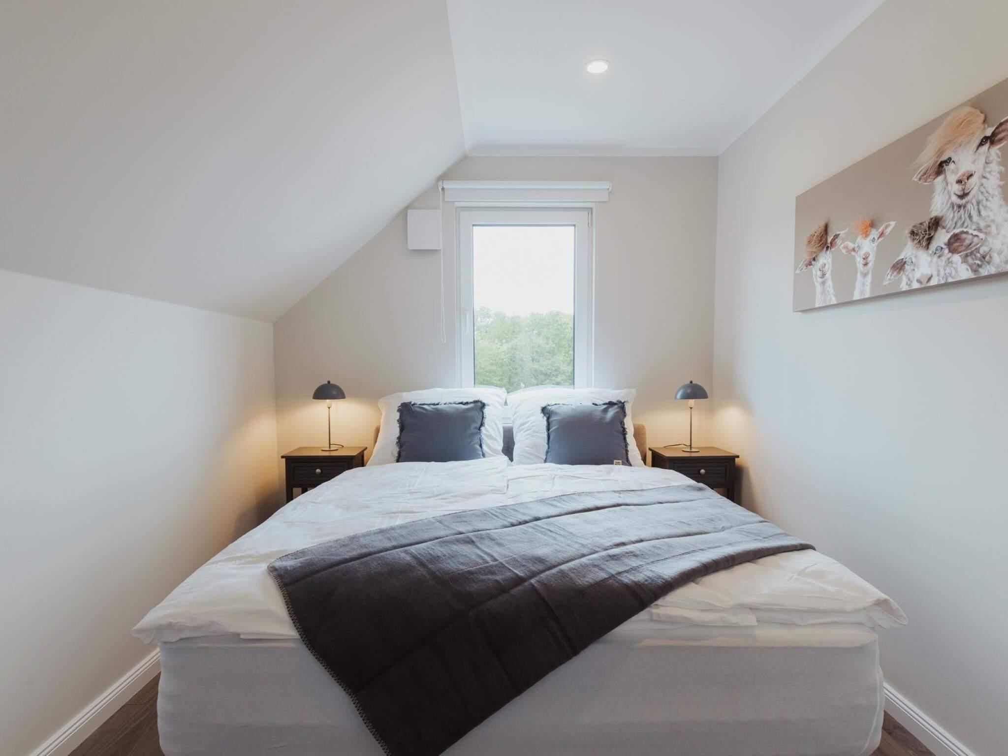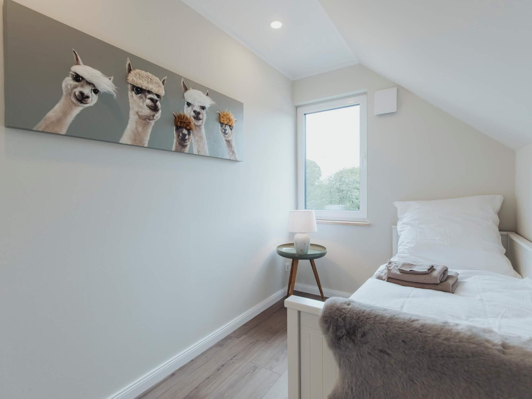 Sov længe, lav mad, slapp af: I det rummelige familiehus er der noget for enhver smag. De ca. 120 m² boligareal er optimalt fordelt på de to etager. På øverste etage er der fire værelser samt et badeværelse med dagslys fra et ovenlys. Soveværelserne med højkvalitets boxspring-senge (i størrelserne 1,60 x 2,10 meter samt 1,80 x 2,10 meter) af bedste kvalitet indbyder til at sove længe. I de skræddersyede indbyggede skabe finder du rigelig opbevaringsplads til alle.