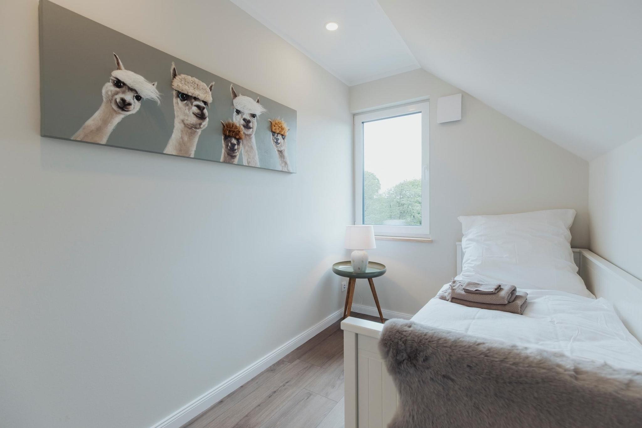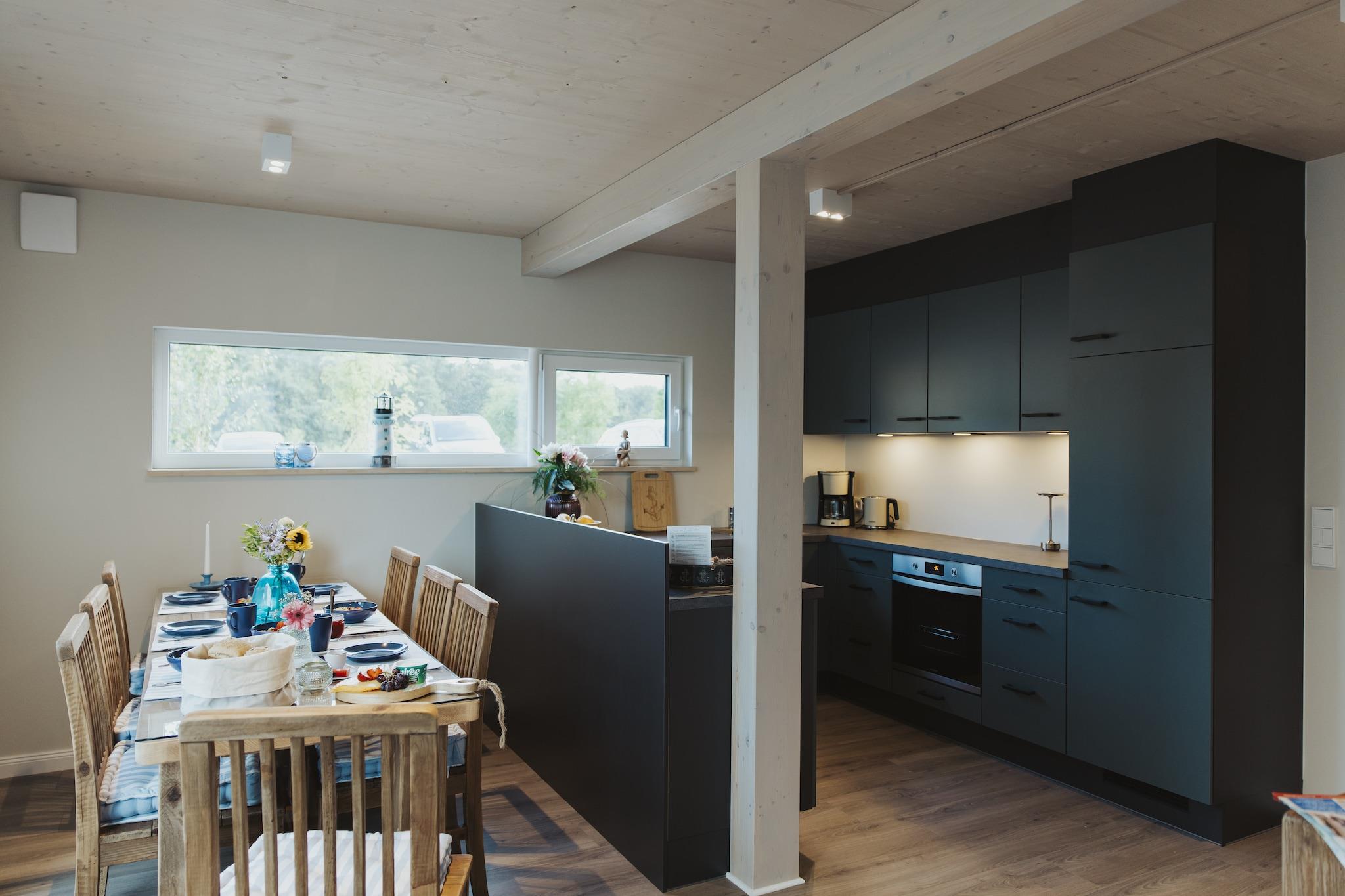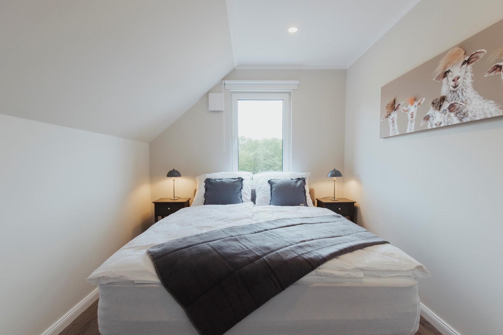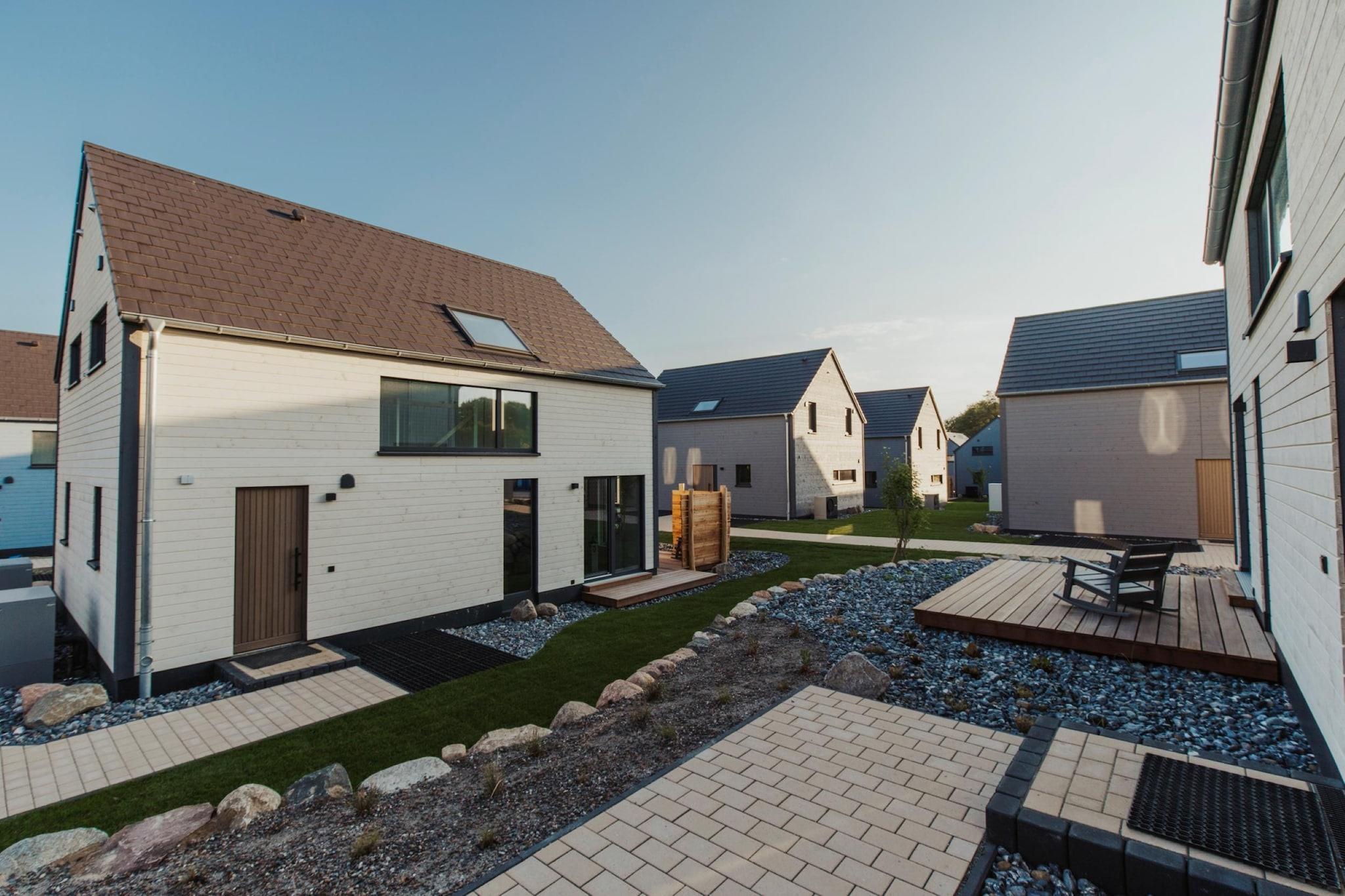 Ikke langt fra det glitrende Bodden, beliggende i det nordlige Rügens bølgende bakker, ligger den nybyggede, lille feriepark i Sagard – et sted, der udstråler fred og lover afslapning. Her, hvor den salte Østersøbrise kærtegner træerne, og det varme lys danser hen over markerne, udfolder sig en feriepark, der er perfekt til en lille flugt fra hverdagen. Resortets feriehuse er rummelige og stilfulde – hver især et komfortabelt hjem til op til syv personer. Med fire kærligt møblerede soveværelser, to moderne badeværelser – hvoraf det ene har et badekar til afslapning – og en privat strandstol på terrassen tilbyder de de perfekte rammer for en ferie med familie eller venner. Uanset om man nyder morgenmaden udendørs, læser i skyggen eller lytter til naturen – vil alle finde deres yndlingssted her. Indenfor kan gæsterne forvente lyse værelser, et moderne badeværelse og faciliteter, der kombinerer komfort og hygge. Nærheden til Bodden giver muligheder for gåture langs vandet, cykelture gennem landskabet eller udflugter til de nærliggende attraktioner på øen Rügen. Det er mere end bare en feriepark – det er et sted, hvor tiden går langsommere, tankerne falder til ro, og minder skabes, der hænger ved længe efter, du er taget afsted. Højdepunkter inkluderet: Slutrengøring, alle forbrugsbaserede energiomkostninger, linnedpakke, Wi-Fi, parkering Bemærk venligst: Hunde er kun tilladt efter anmodning og skal registreres (35 EURO pr. ophold pr. hund, maks. 2 hunde tilladt!). Dette er en bilfri feriepark; du kan køre op til ejendommen for af- og pålæsning.