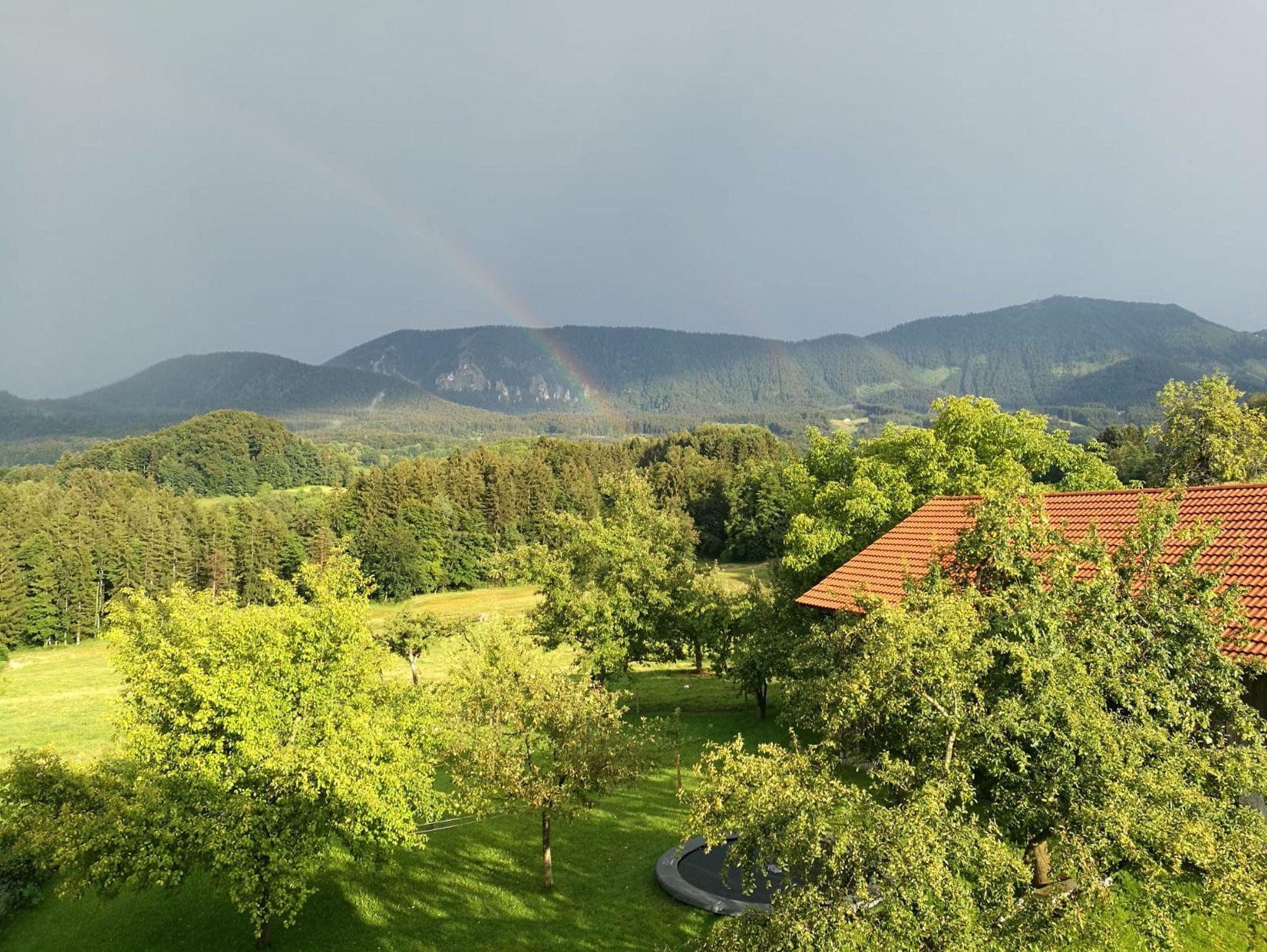 Diese moderne Dachgeschosswohnung in unserem Bauernhaus steht Ihnen für bis zu fünf Personen zur Verfügung. Ein großes Schlafzimmer mit Galerie ist mit einem Doppelbett und drei weiteren Schlafmöglichkeiten ausgestattet. Gefrühstückt wird an dem Holztisch im Wohnraum, in dem sich auch die Küchenzeile mit Kochherd, Ofen, Kaffeemaschine, Wasserkocher, Kühlschrank und Geschirrspülmaschine befindet. Für einen gemütlichen Abend sorgt die große Couch, die ausgezogen zu einem Bett umfunktioniert werden kann, oder Sie verbringen den lauen Sommerabend auf dem zur Bergseite ausgerichteten Balkon. Das Bad ist mit einer Dusche und einer Waschmaschine ausgestattet.