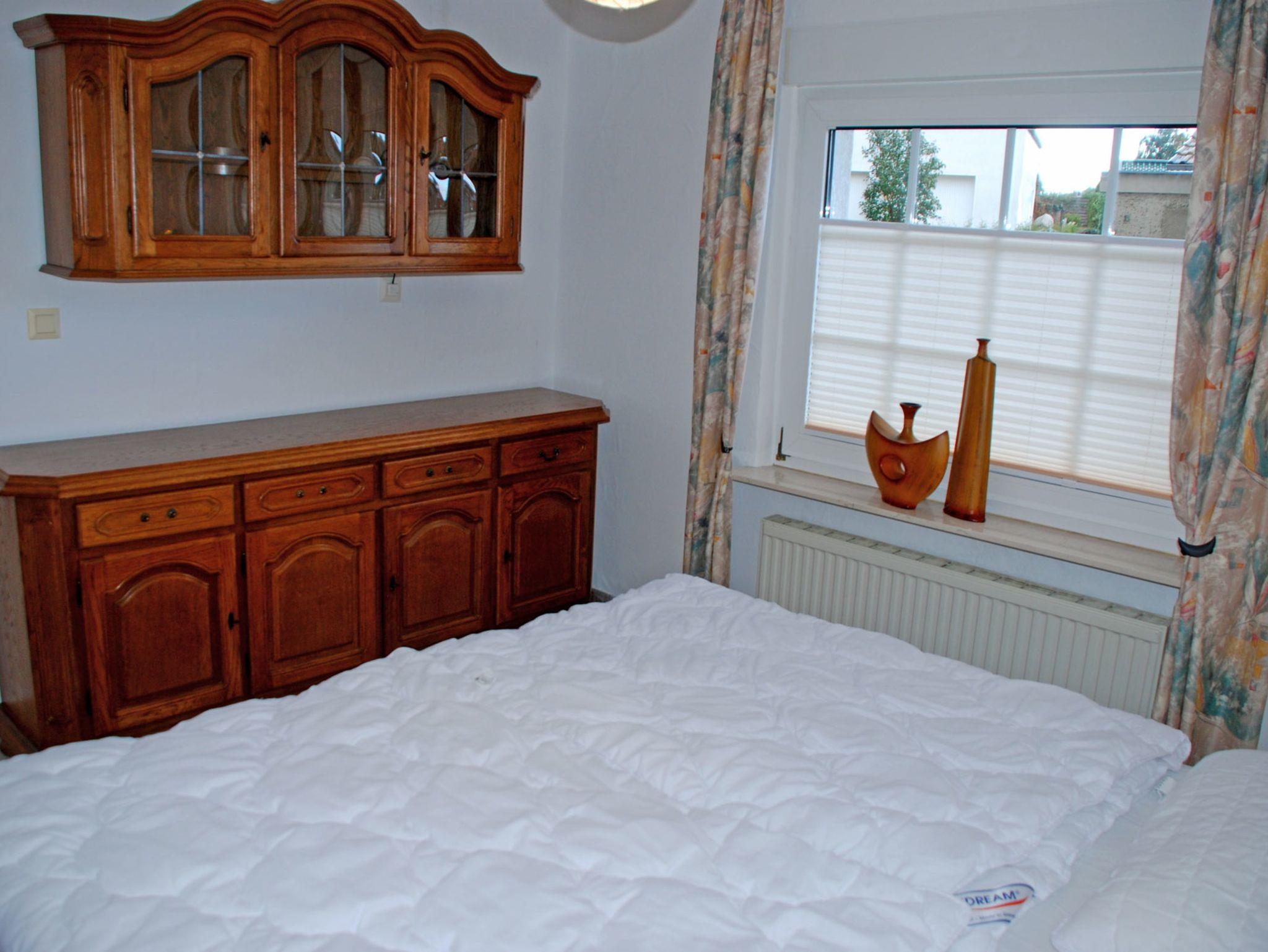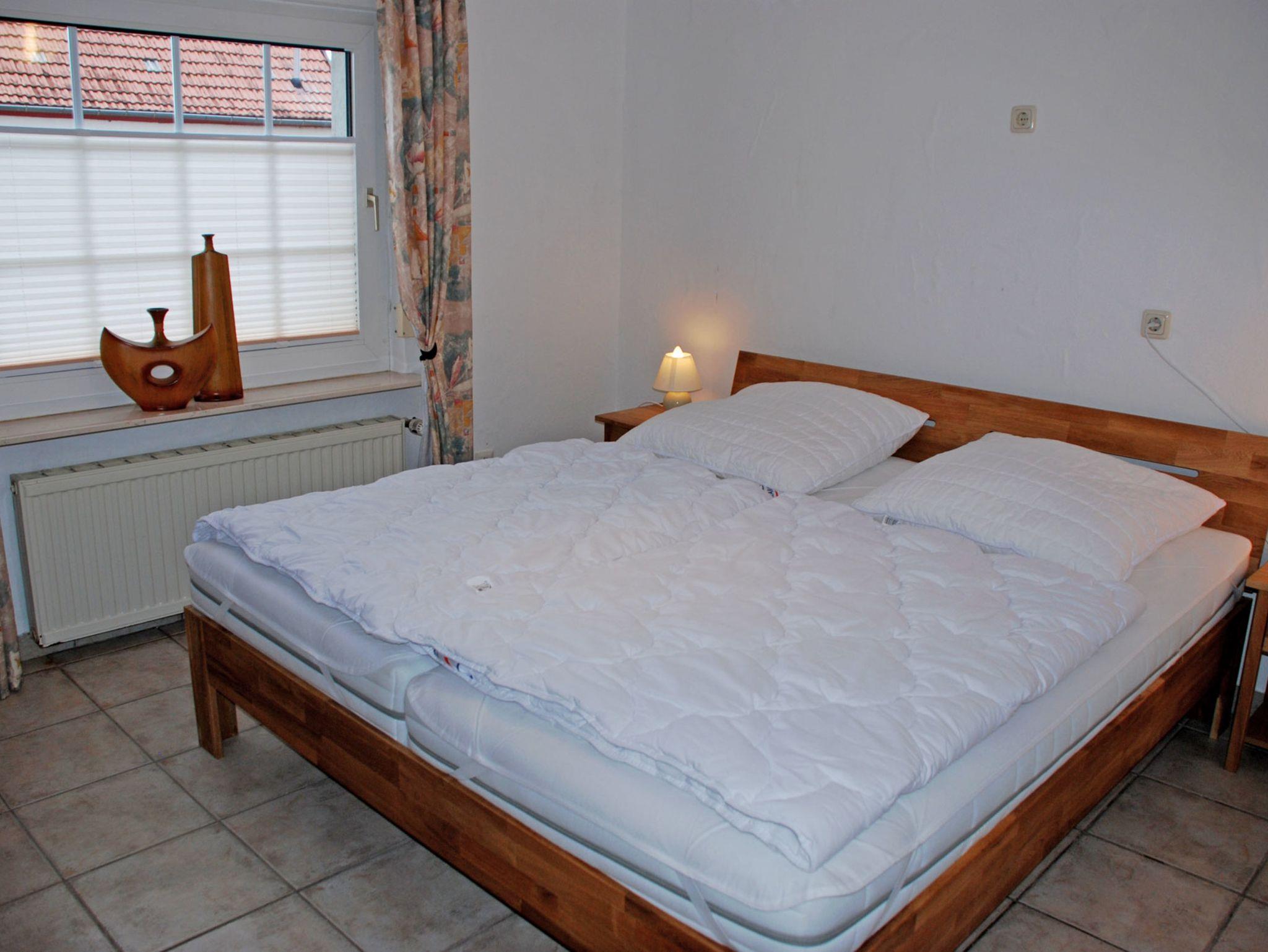 Im ersten Schlafzimmer stehen ein bequemes Doppelbett mit Nachttischen und Leselampen sowie ein Kleiderschrank. Das zweite Schlafzimmer bietet 3 Einzelbetten mit Nachttischen und Leselampen und einen Kleiderschrank. Das Bad ist mit Dusche, WC, Waschtisch ausgestattet und verfügt über Tageslicht. Auf der vorhandenen Terrasse können Sie die Sonne genießen oder bei einem Gläschen Wein entspannen bzw. Grillen.