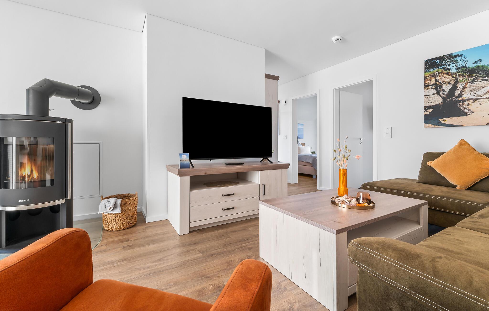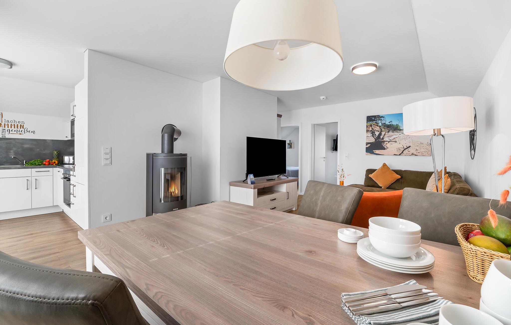 I den hyggelige opholdsstue kan I tilbringe hyggeaftener med familien foran tv'et med Magenta Home Entertainment eller den knitrende pejs. Amatørkokkes hjerter banker hurtigere i det fuldt udstyrede køkken. Her kan I slippe kulinarisk og kreativt afsted under jeres ferie.