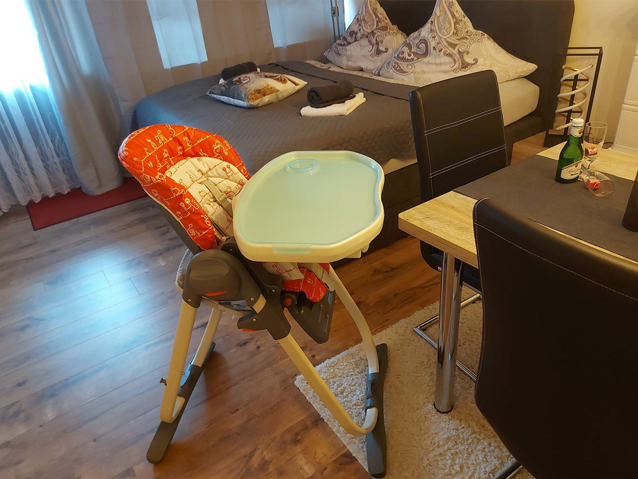 Ein Babybett kann auf Anfrage gegen eine Gebühr in Höhe von 10€ pro Aufenthalt zur Verfügung gestellt werden.