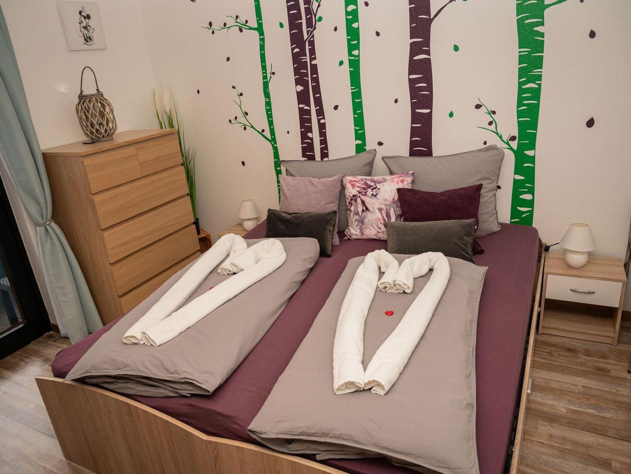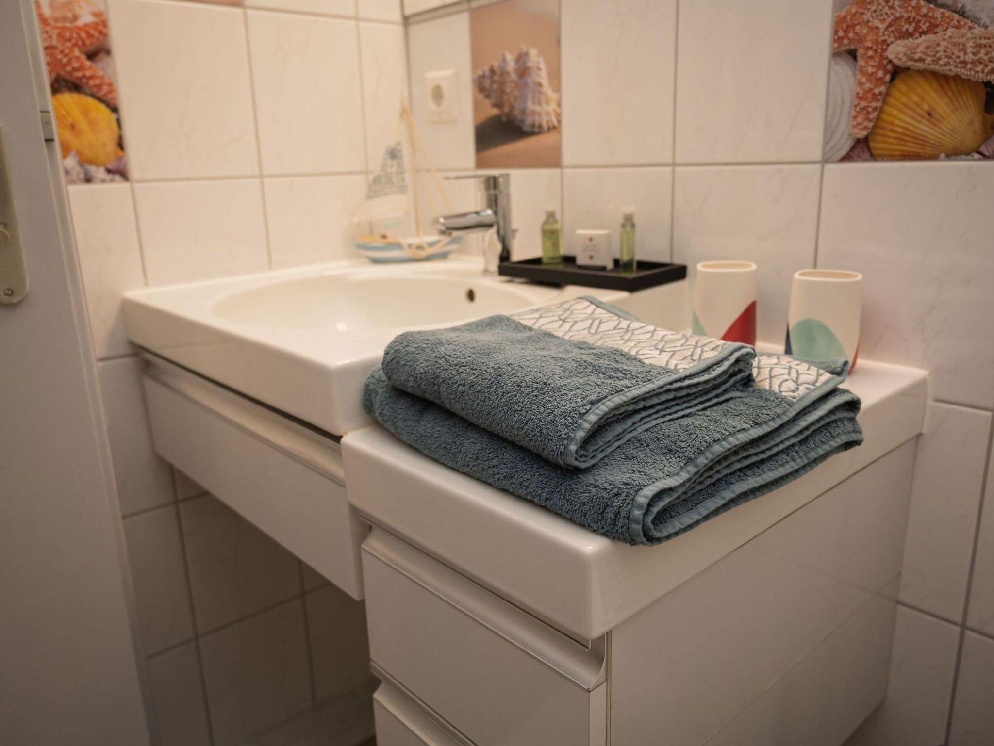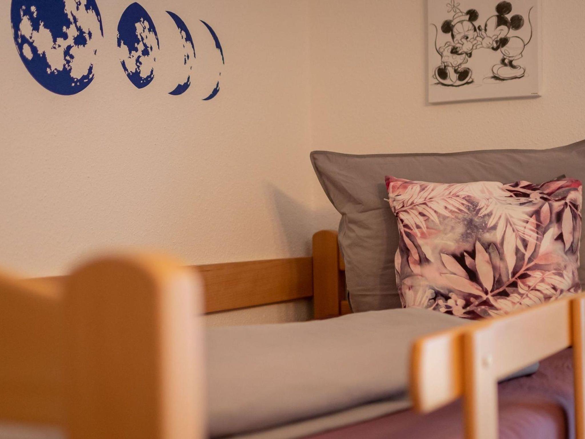Die 55 qm Unterkunft für bis zu 6 Personen verfügt über ein Schlafzimmer mit Doppelbett und Etagenbett, eigenem Bad, Badewanne, Handtuchtrockner, Föhn, einer vollausgestatteten Küchenzeile mit Geschirrspüler und Herd, einem Essbereich, einer Ausziehcouch im Wohnzimmer und Flachbild-TV, Kabelempfang, DAB Radio und DVD Player. Handtücher und Bettwäsche werden gestellt. Die Ferienwohnung bietet außerdem kostenfreies WLAN, eine Auswahl an Büchern und Spielen. Auch ein kleines Begrüßungsgeschenk erwartet euch.