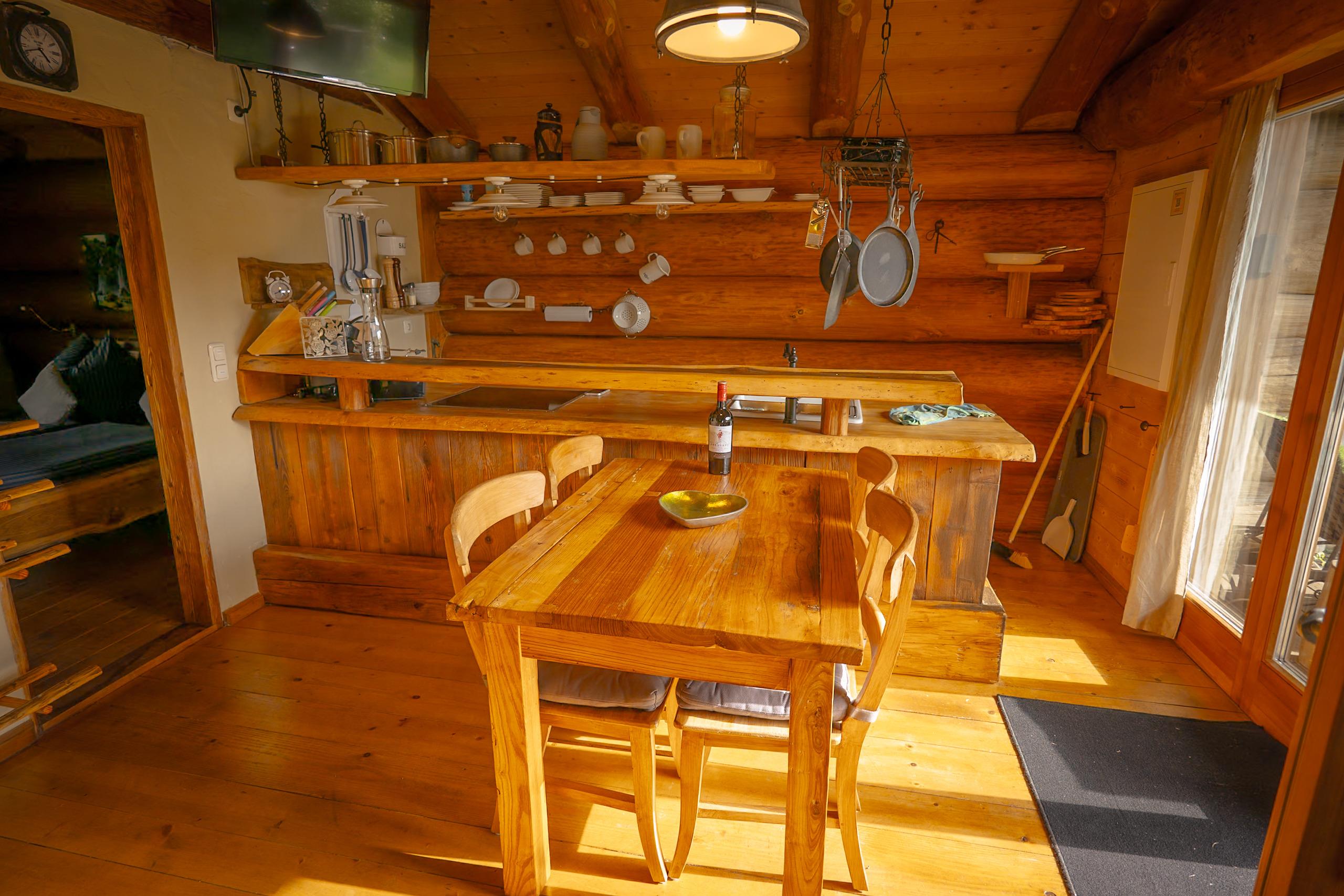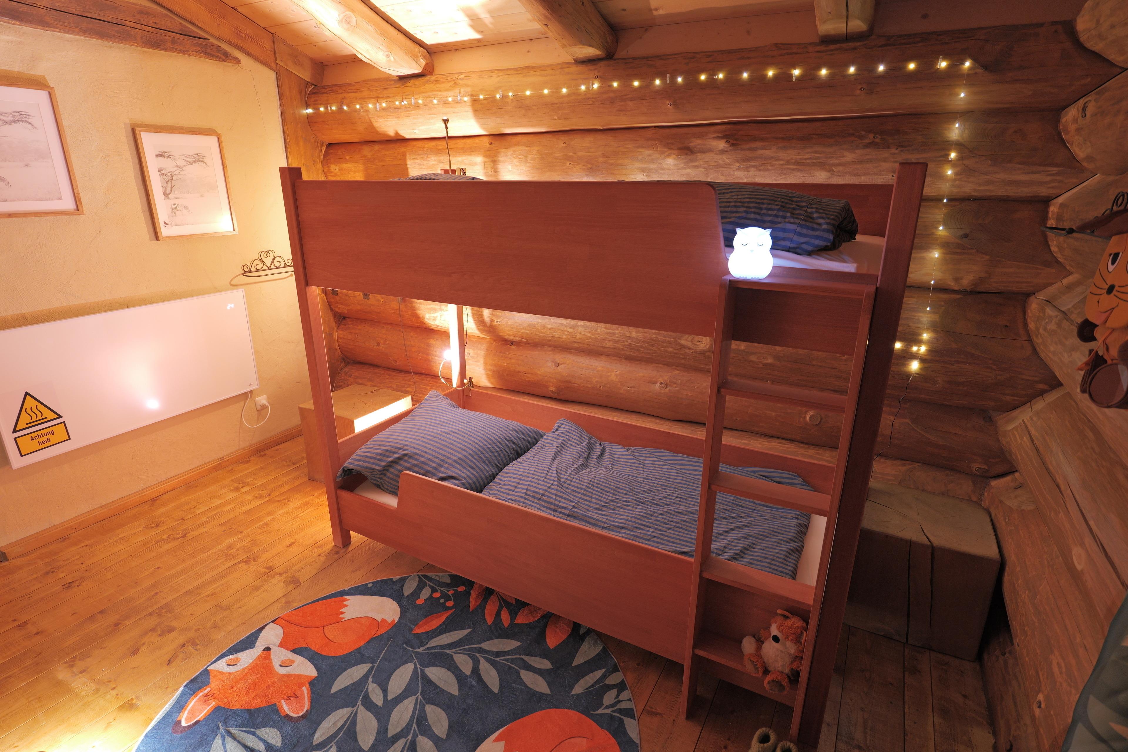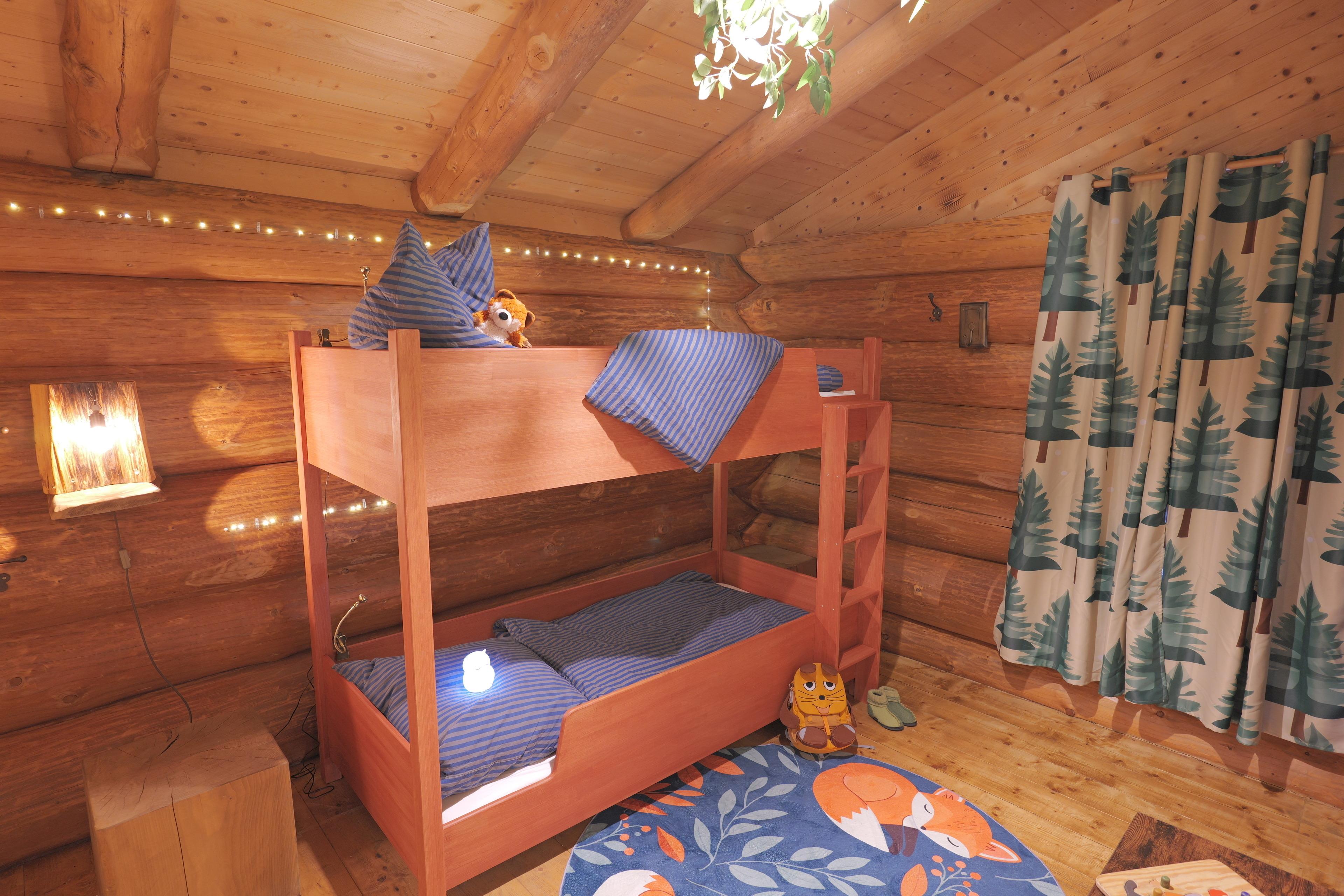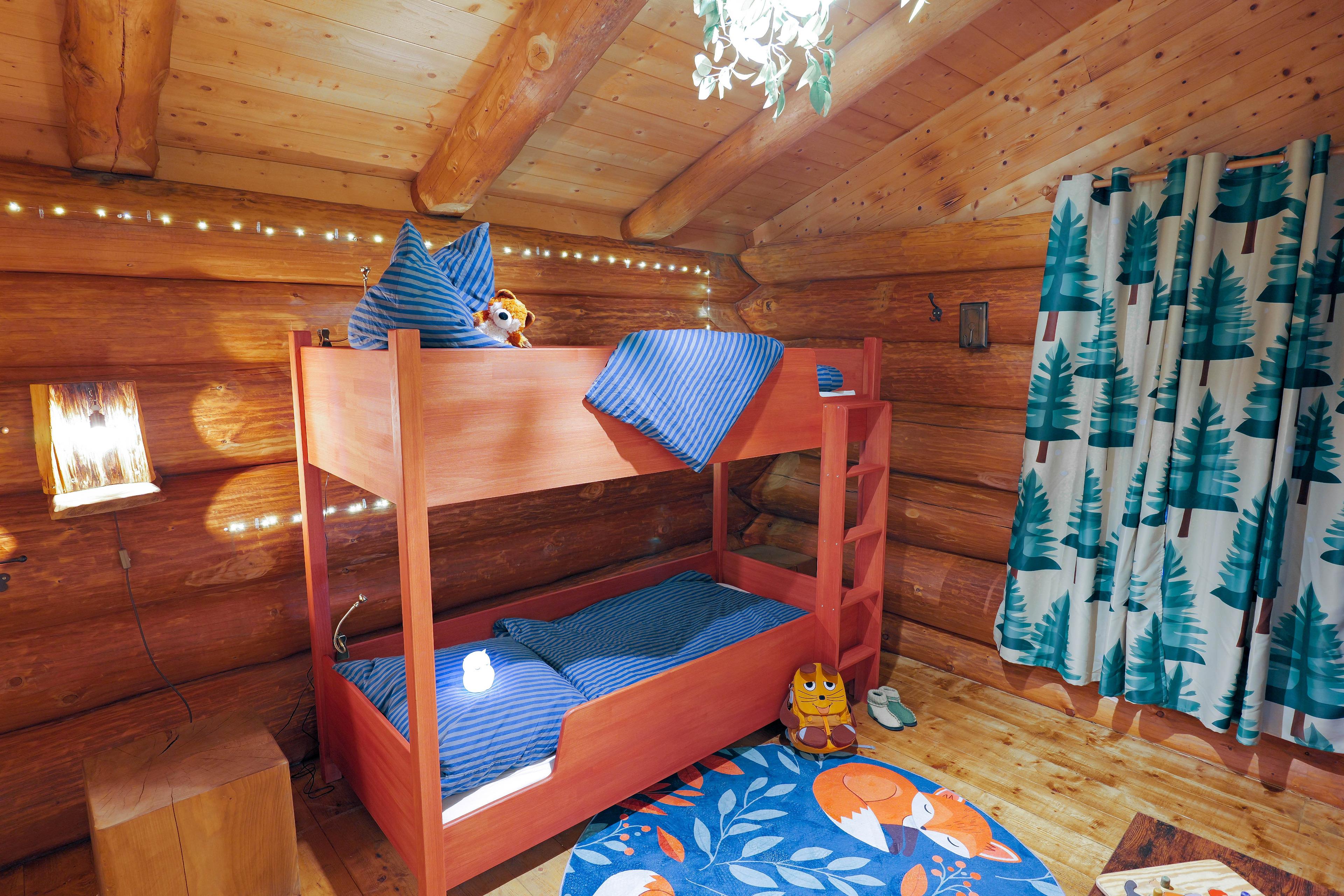 Mit einem Schlafzimmer, einem liebevoll eingerichteten Waldkinderzimmer mit Stockbett, voll ausgestatteter Küche, modernem Bad und Kamin ist das Haus ideal für Familien, Paare und Freunde.
