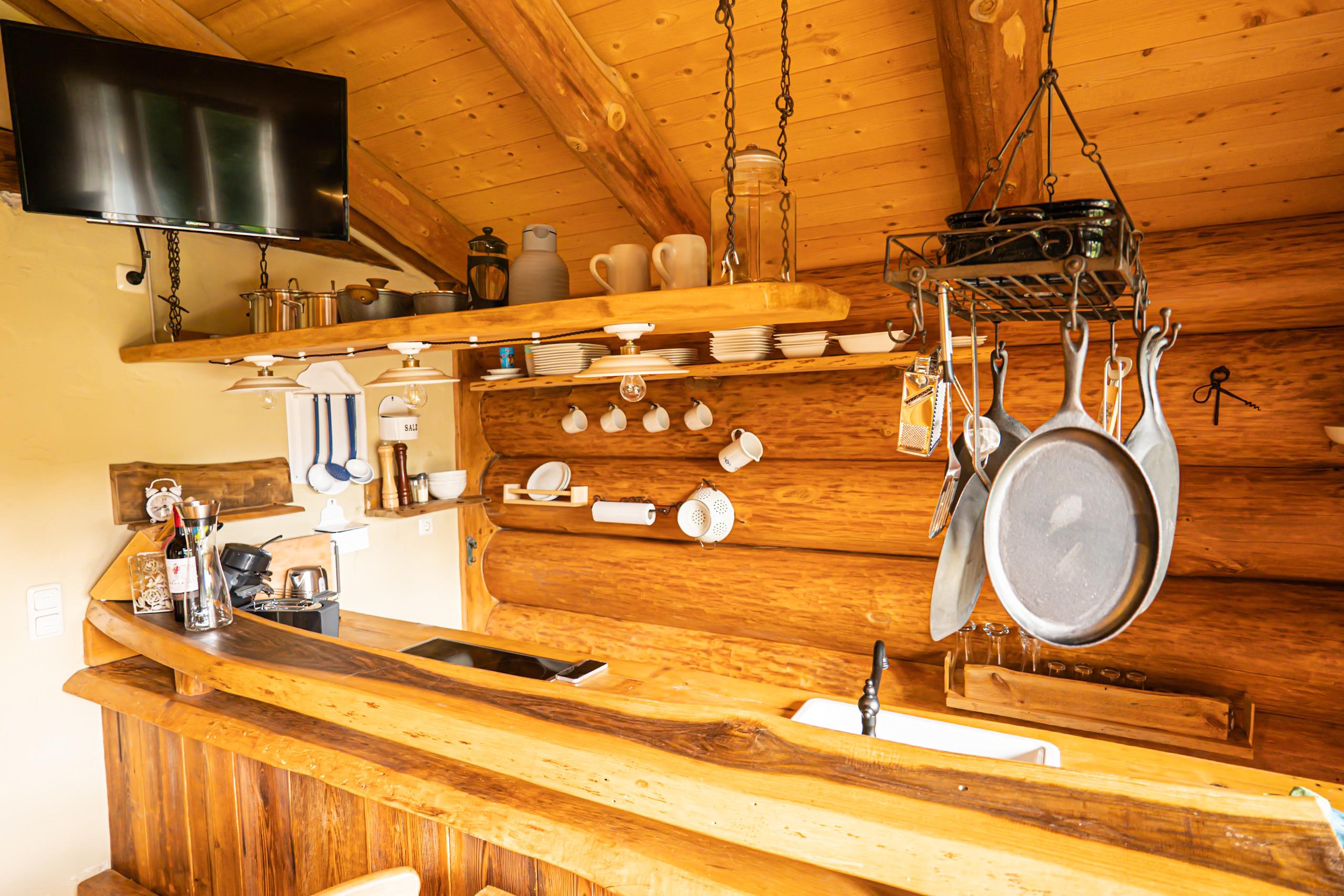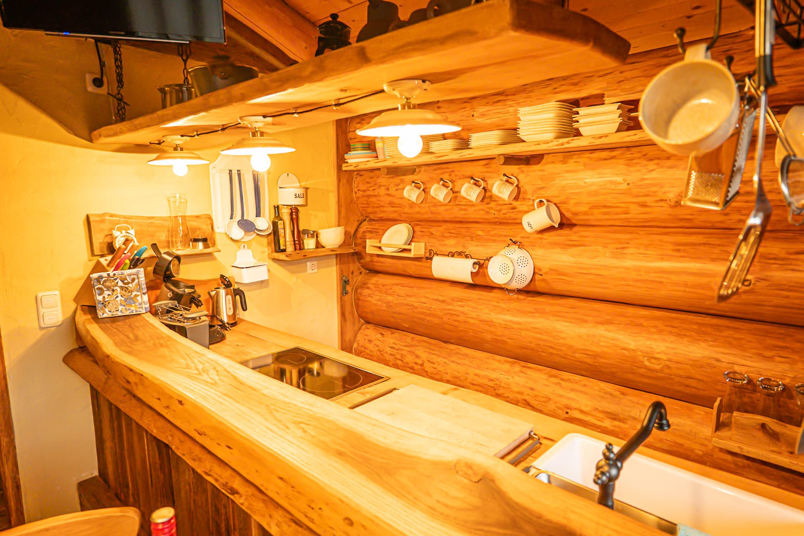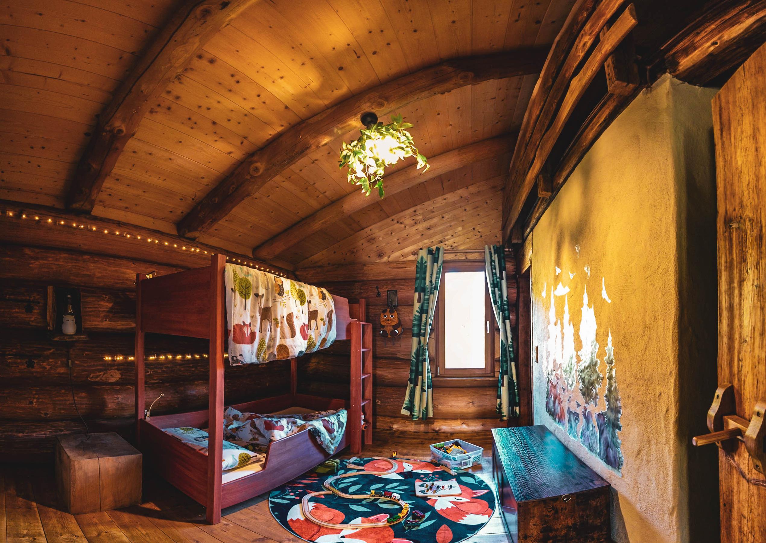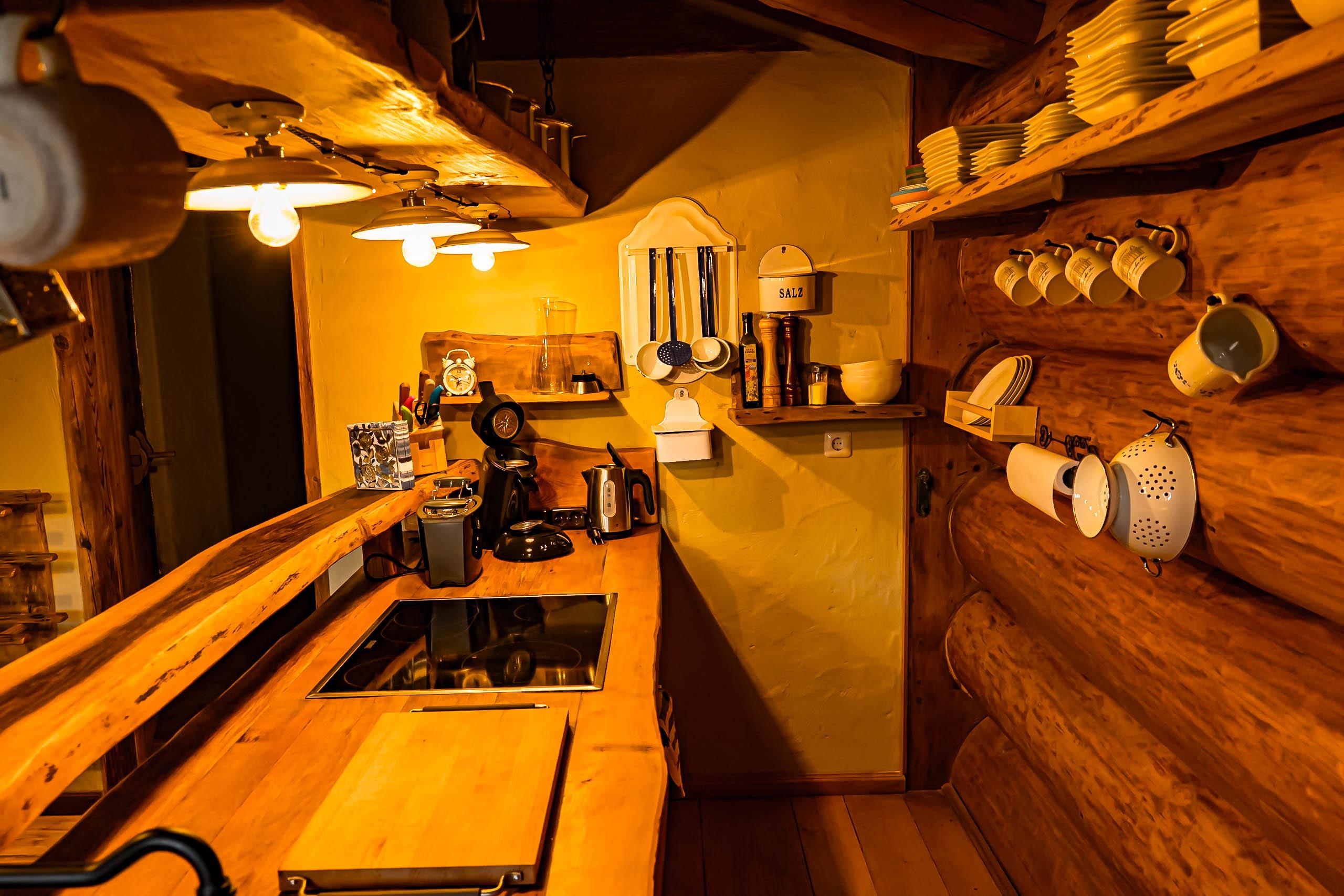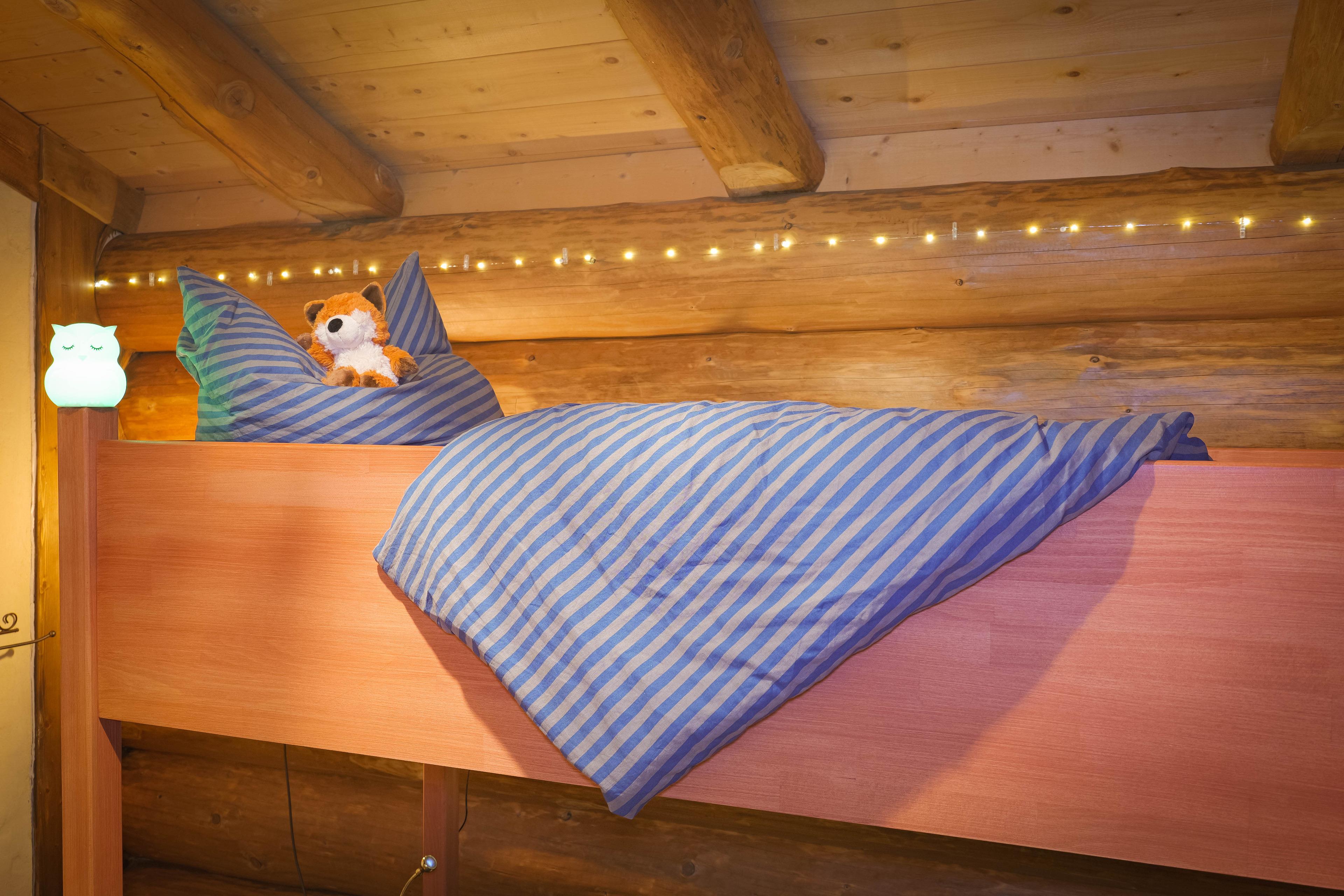 Mit einem Schlafzimmer, einem liebevoll eingerichteten Waldkinderzimmer mit Stockbett, voll ausgestatteter Küche, modernem Bad und Kamin ist das Haus ideal für Familien, Paare und Freunde.