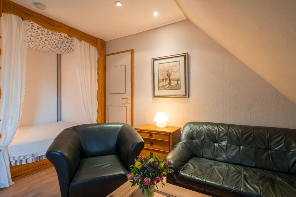 The holiday apartment "Heuboden" has a beautiful, quiet south-east location. Antique furniture and bright colors have been stylishly combined in this apartment.