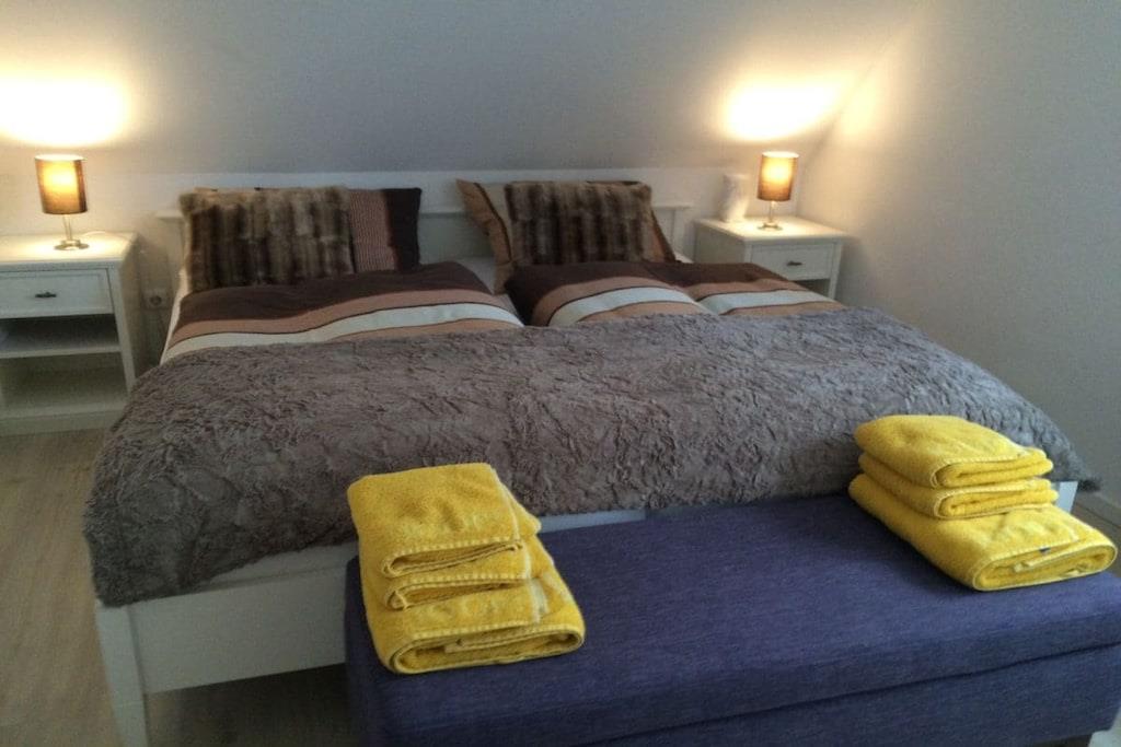 Stueetage: (entre(, , varme), Køkken(kogeplade, elkedel, brødrister, kaffemaskine, ovn, grill, mikrobølgeovn, opvaskemaskine , køleskab, fryser), stue / spisestue(, , , bibliotek, Fjernsyn, spisebord, DVD-afspiller, Blu-ray afspiller, radio, varme, barnestol), badeværelse(, , toilet, bruser, håndvask, varme, føntørrer), pulterkammer(, tørreskab), varme(tørretumbler, vaskemaskine, varme, strygebræt, strygejern, tørreskab)) På 1. etage: (entre(), soveværelse(, , dobbeltseng, Fjernsyn, insektnet), soveværelse(, , dobbeltseng, tremmeseng, insektnet), badeværelse(, , toilet, bruser, håndvask, varme, føntørrer), pulterkammer(barnestol)) Loft: (Stue/soveværelse(, , enkeltsovesofa, Fjernsyn)) , , , , , Internetadgang, Førstehjælp, tørretumbler, vaskemaskine, varme, terrasse(, Græsplæne, havemøbler, solstole, Haveskur), have(, Græsplæne, grill, havemøbler, solstole, barnestol, Haveskur), parkering, strygebræt, strygejern, tørreskab