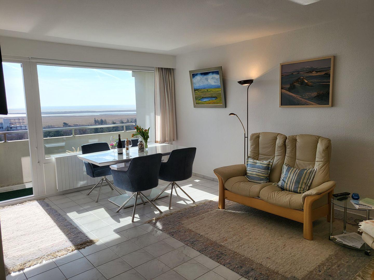 2,5 Zimmerwohnung mit Seeblick und Balkon,Strandkorb, Wohnnraum mit integrierter Küche, 1 Schlafnische mit Doppelbett 160x190 cm und ein weiteres Schlafzimmer mit Einzelbett, Duschbad mit WC, Nichtraucher, keine Haustiere erlaubt, WLAN