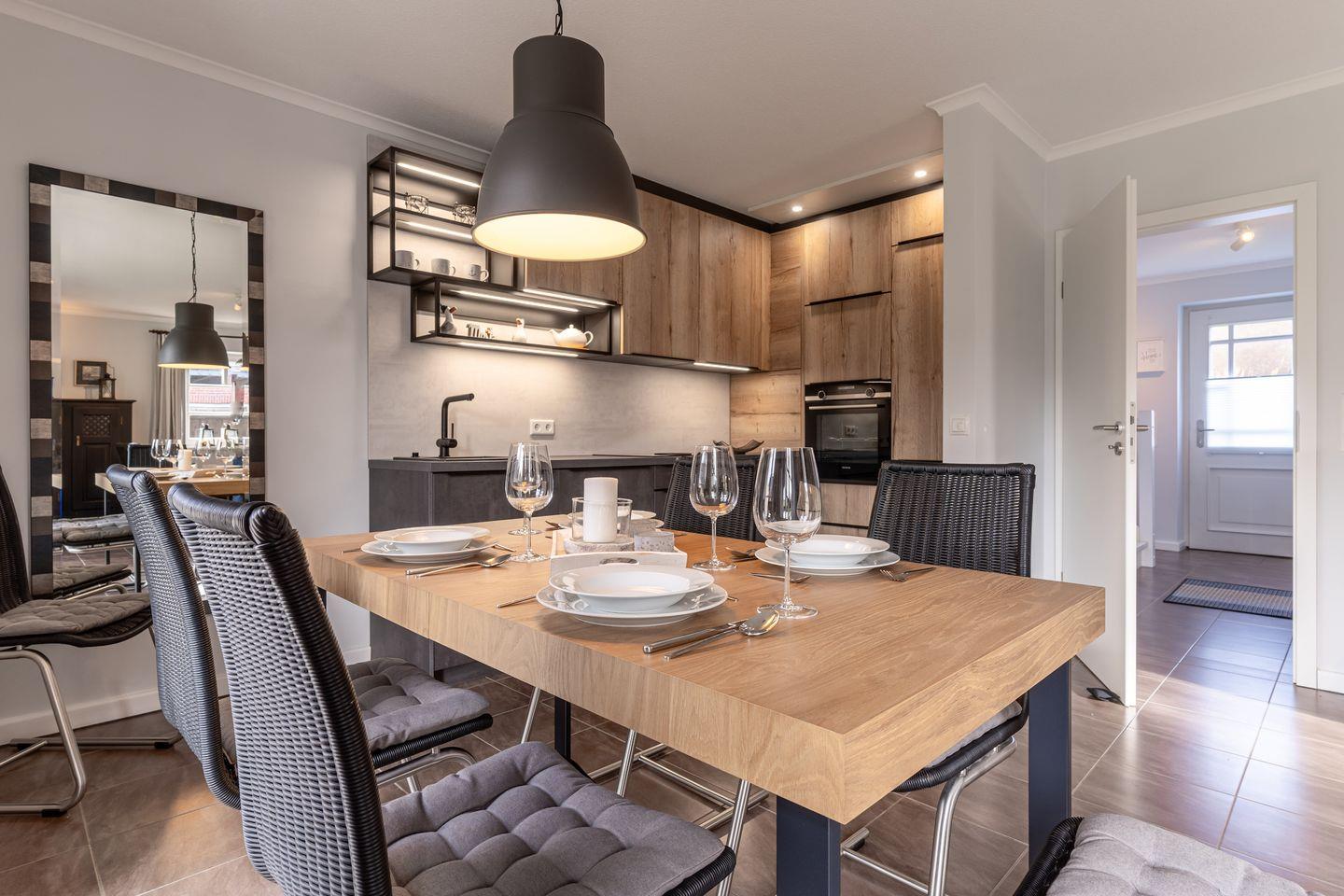 Im Erdgeschoss befindet sich der Wohnraum mit einer offenen Küche und einem gemütlichen Essbereich. Die Küche ist mit nützlichen Geräten voll ausgestattet.