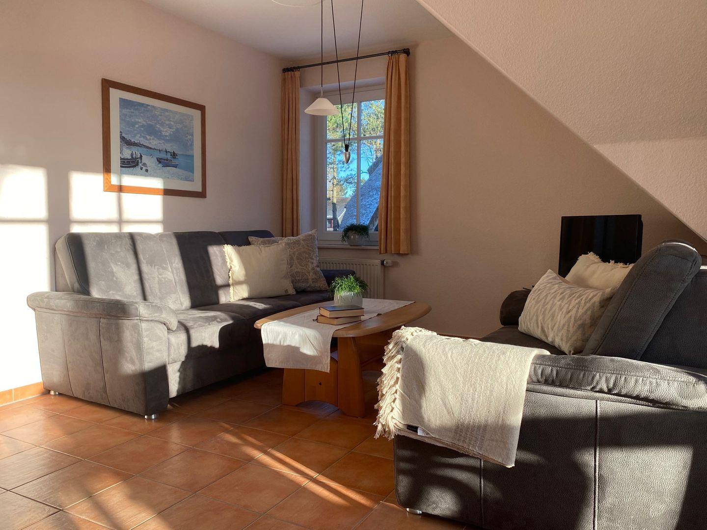 Willkommen in unserer 4-Zimmer-Wohnung auf 110 qm im 1. OG und Dachgeschoss. Perfekt für 6 Personen. Gemütliche Sitzecke mit Ledergarnitur, voll ausgestattete halboffene Küche. Balkon und Loggia mit Gartenmöbeln. Drei Schlafzimmer mit Doppelbetten. Tageslichtbäder mit Dusche. Freier Zugang zum Hauswirtschaftsraum. Waschmaschine/Trockner gegen Gebühr. Fahrradraum vorhanden. Gekennzeichneter Stellplatz für Ihr Auto auf dem Grundstück. Ideal für einen komfortablen Aufenthalt.