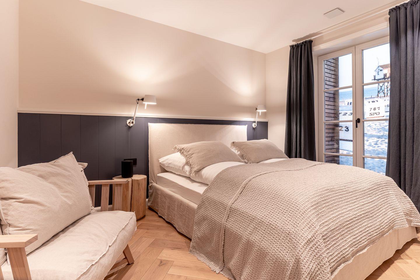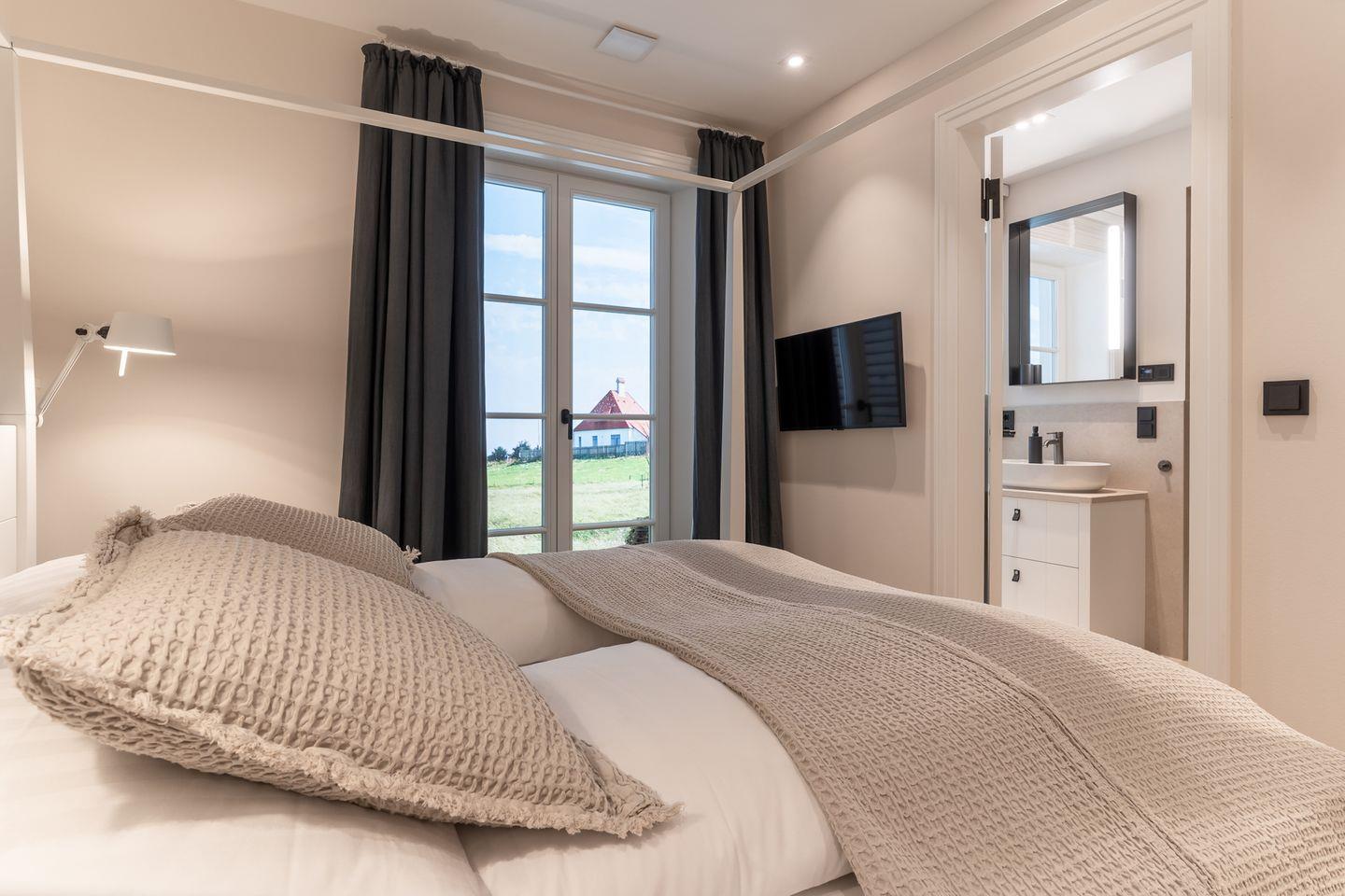 Auf dieser Ebene befinden sich zwei weitere Schlafzimmer, die mit je einem Doppelbett 1x (1,60 x 2,00 m) und 1x (1,80 x 2,00m), Kleiderschrank und TV ausgestattet sind.