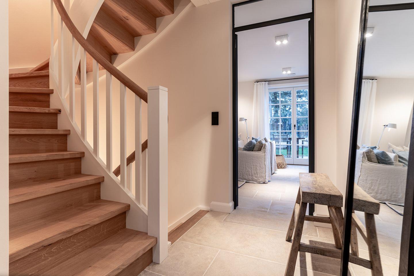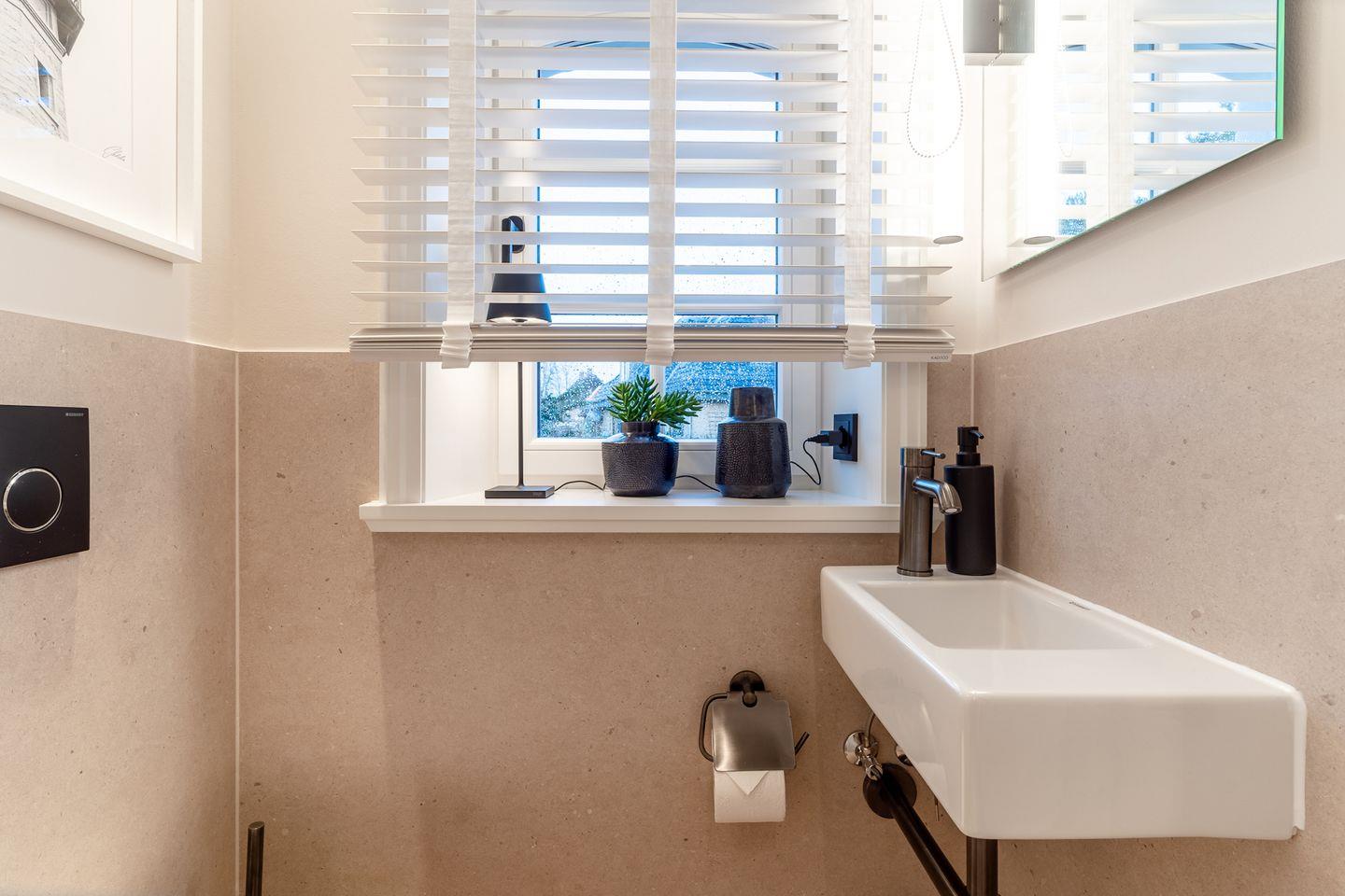 Im Erdgeschoss erwartet Sie ein lichtdurchflutetes Wohnzimmer mit Gaskamin und TV, eine offene Küche sowie ein gemütliches Esszimmer. Die Küche verfügt über hochwertige Elektrogeräte und genügend Platz zum gemeinsamen Kochen. An den Wohnbereich schließt sich ein Flur sowie ein Gäste-WC an.