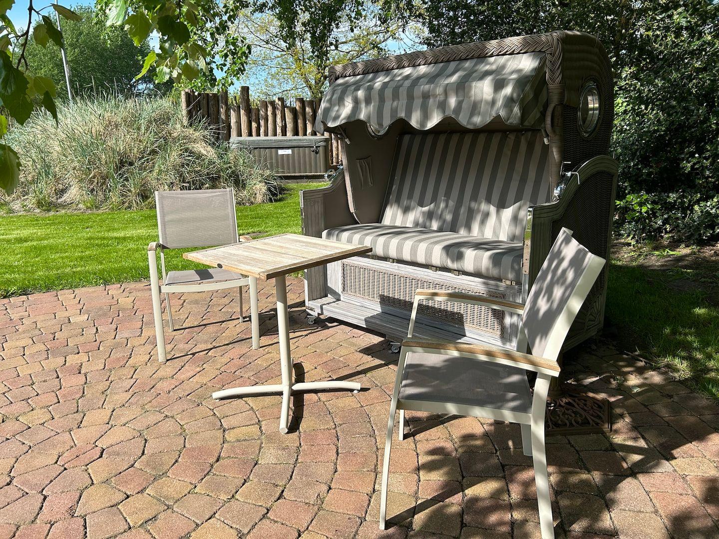 Ein Parkplatz auf dem Grundstück ist für Sie reserviert. Der Französische Balkon in Nord-Westlage bietet einen hellen und freundlichen Ausblick. Im Garten steht Ihnen eine Sitzecke mit Strandkorb zur Verfügung.
