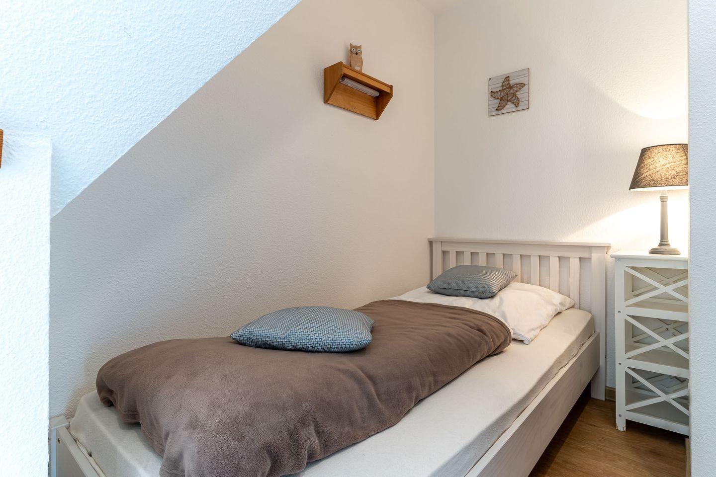 Willkommen in unserer großzügigen Dachgeschosswohnung! Auf ca. 68 qm erwarten Sie moderner Komfort und genügend Platz für bis zu 4 Personen plus Kleinkind. Die neue, vollausgestattete Küchenzeile lädt zum Kochen ein, während das Elternschlafzimmer mit einem komfortablen Ehebett und das zweite Schlafzimmer mit zwei Einzelbetten für erholsamen Schlaf sorgen. Der großzügige Wohn-/Essbereich führt direkt zu einem außergewöhnlich großen, möblierten Balkon mit Süd-West-Ausrichtung, der zum Entspannen einlädt.