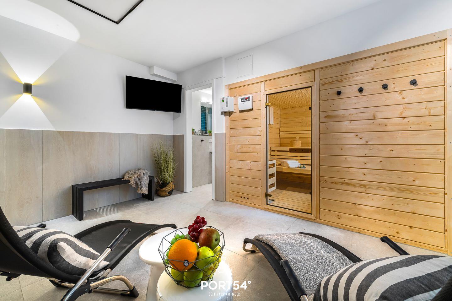 Eine Sauna im Haus vervollständigt das Angebot.