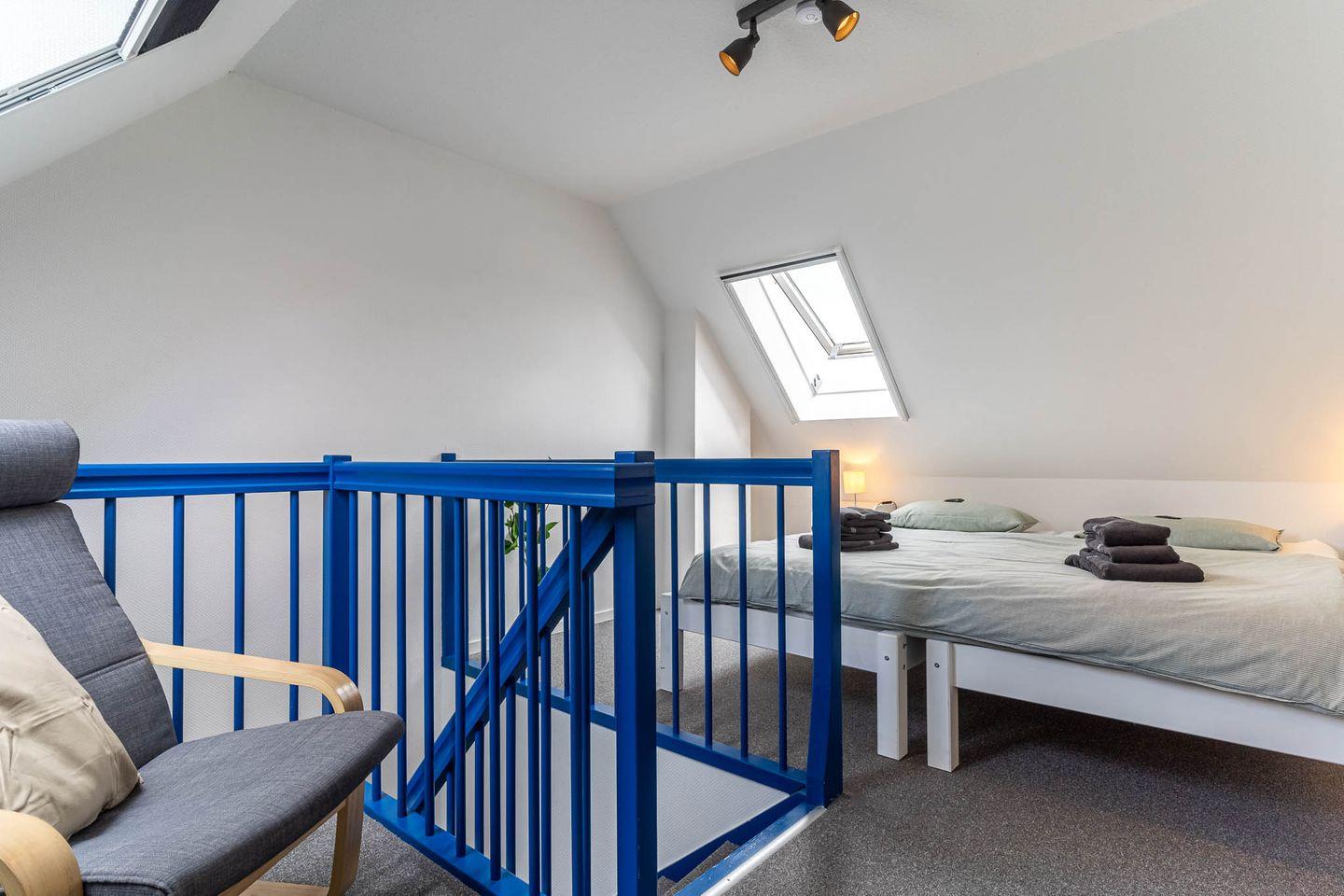Über eine Treppe gelangen Sie in den offenen Schlafraum, der mit einem komfortablen Doppelbett ausgestattet ist, das sich bei Bedarf in zwei Einzelbetten teilen lässt. Nach einem erlebnisreichen Tag in den Dünen von Sankt Peter-Ording können Sie hier wunderbar entspannen und zur Ruhe kommen.