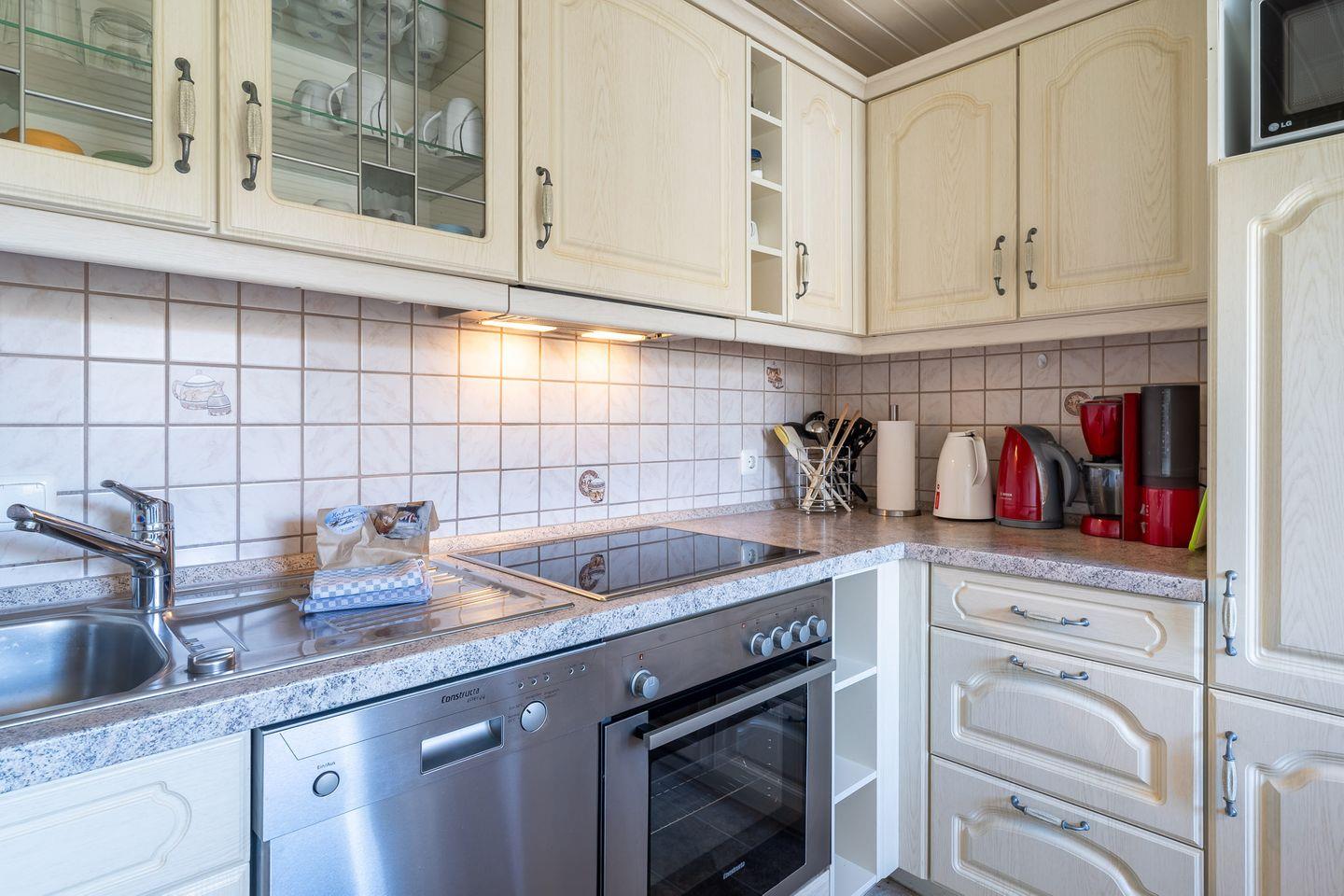 • Küche: Die top ausgestattete Küche lässt keine Wünsche offen und verfügt über Geschirrspüler, Cerankochfeld, 4-Platten-Herd, Dunstabzugshaube, Mikrowelle, Backofen, Toaster, Mixer, Kaffeemaschine, Kühlschrank mit Gefrierfach und Wasserkocher.