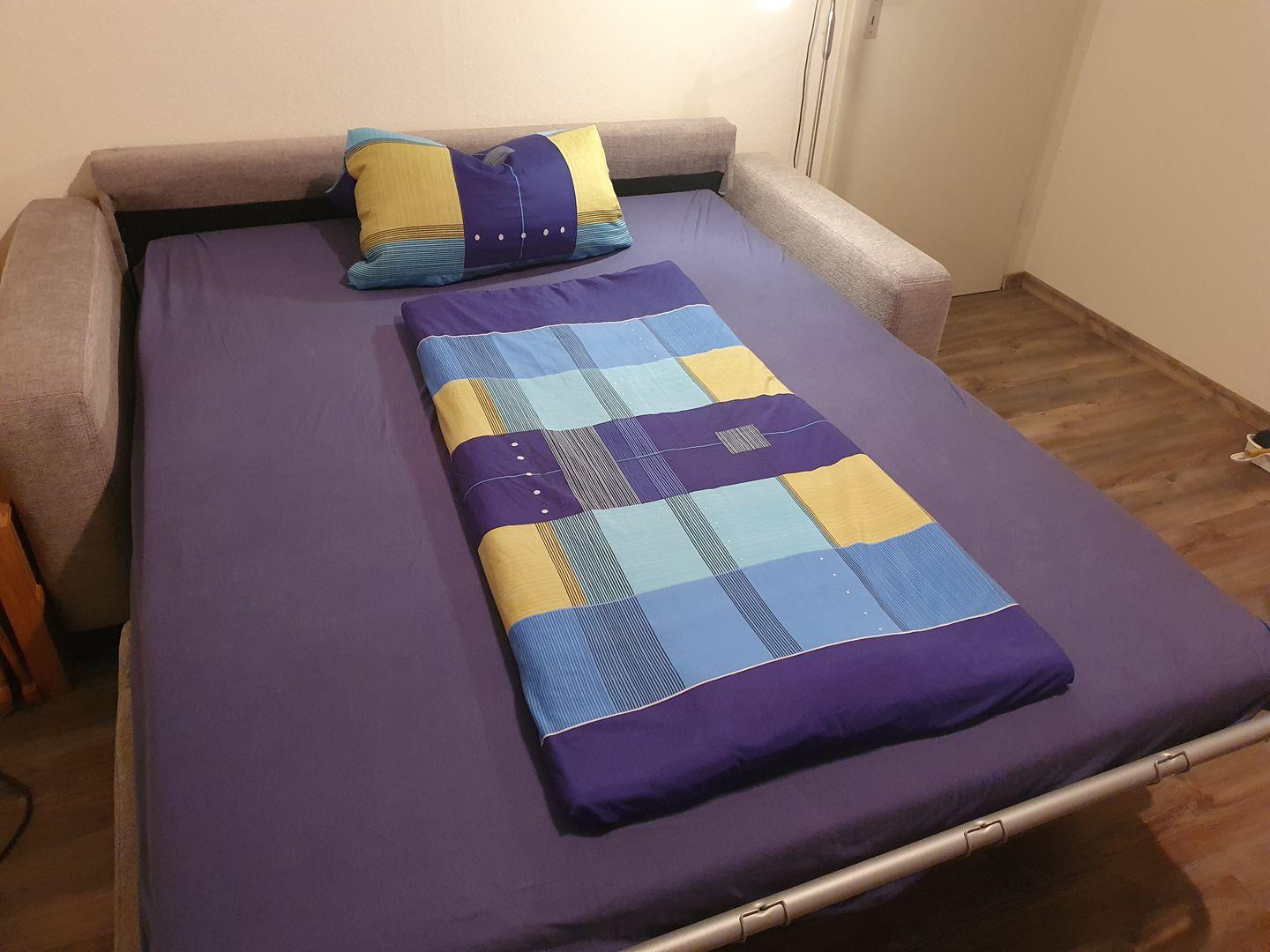 Die Wohnung besteht aus einem Wohn-/Schlafraum (Komplettsanierung im Frühjahr 2025) mit einer Schlafcouch (mit echter Matratze), einem kleinen Kinderzimmer mit Etagenbett (ein Kinderbett kann aufgestellt werden) sowie einem Duschbad (Komplettsanierung im Frühjahr 2016) sowie einem Flur mit Küchenzeile.