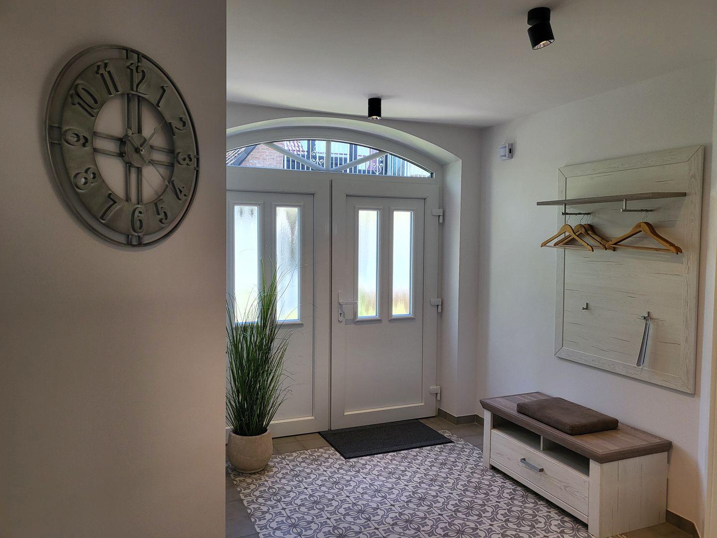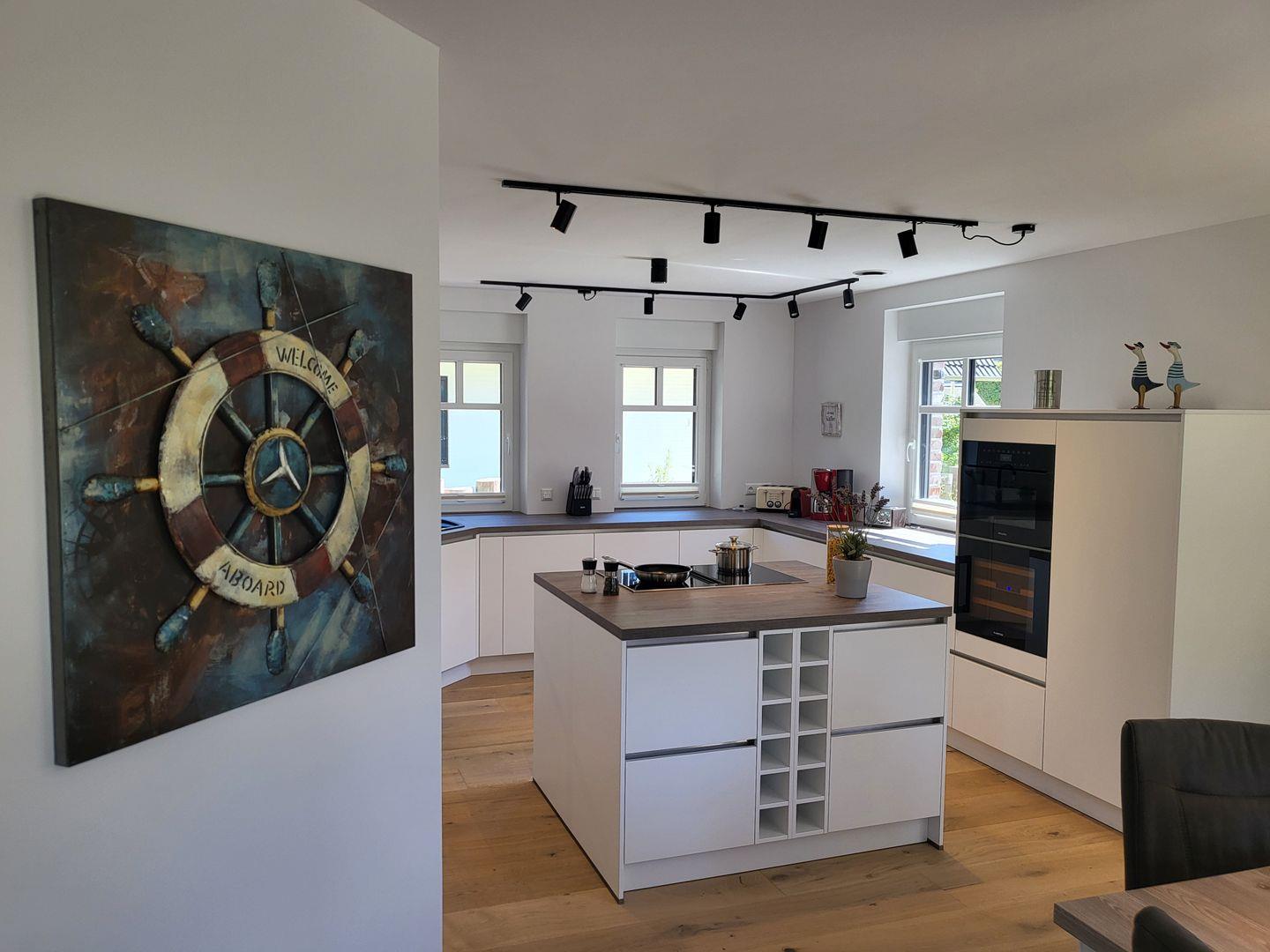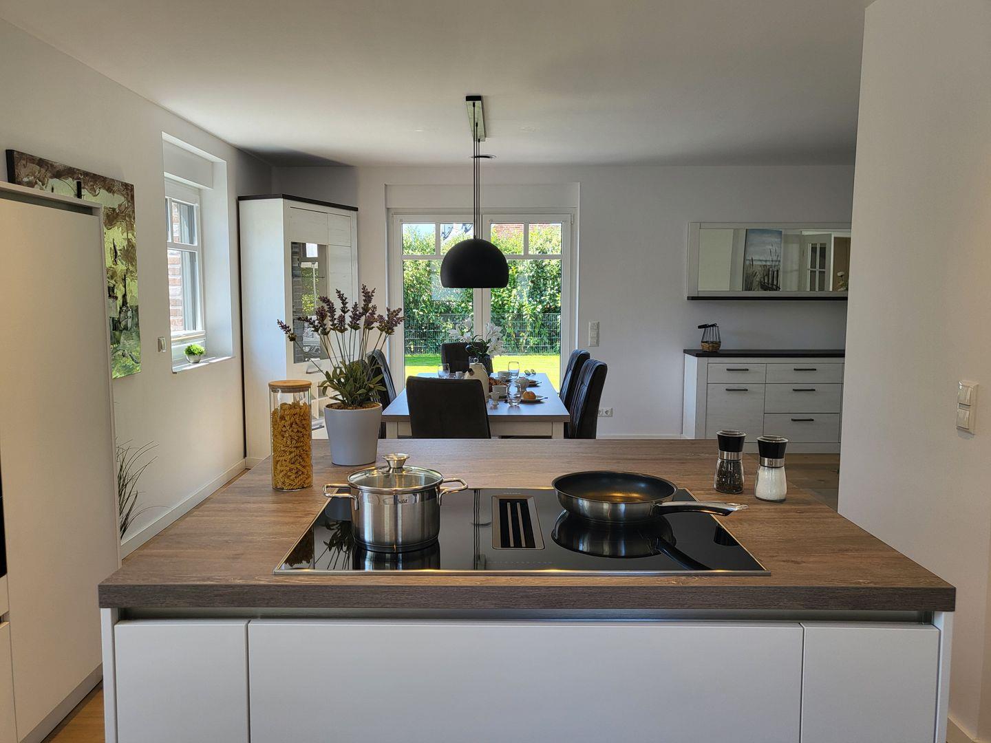 FH Strandläufer, Wohnraum mit moderner Küche, Terrasse, 2 Schlafzimmer mit Boxspringbetten, 2 Bäder, Nichtraucher, Fußbodenheizung, WLAN, 1x Haustier auf Anfrage, kinderfreundlich, 2 PKW Stellplätz auf dem Grundstück vorhanden, 2x Smart-TV, komplett eingezäuntes Gartengrundstück, freies WLAN, kostenfreie Wallbox-Ladestation für E-Autos, kostenfreier Kinderhochstuhl vorhanden, Waschmaschine und Trockner vorhanden