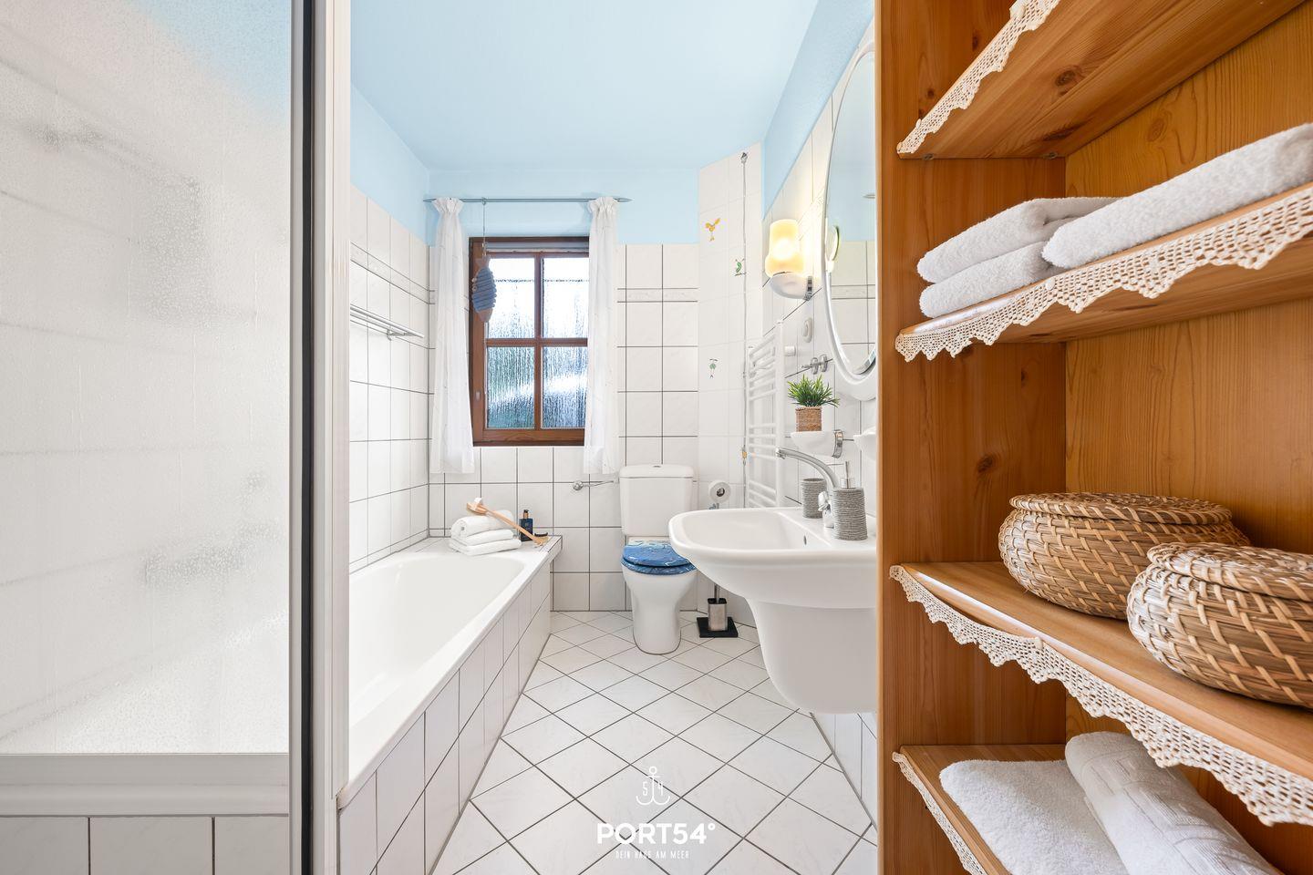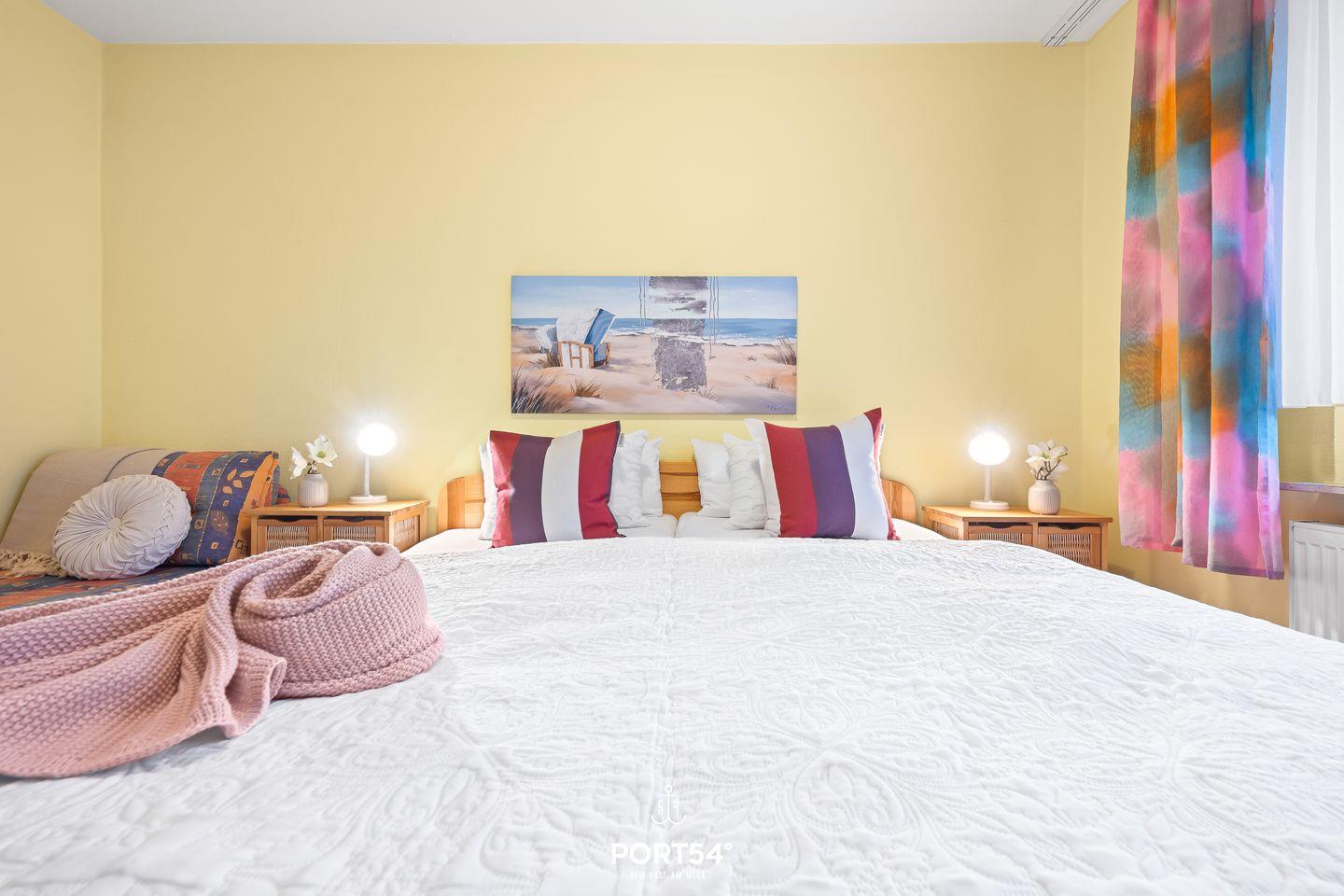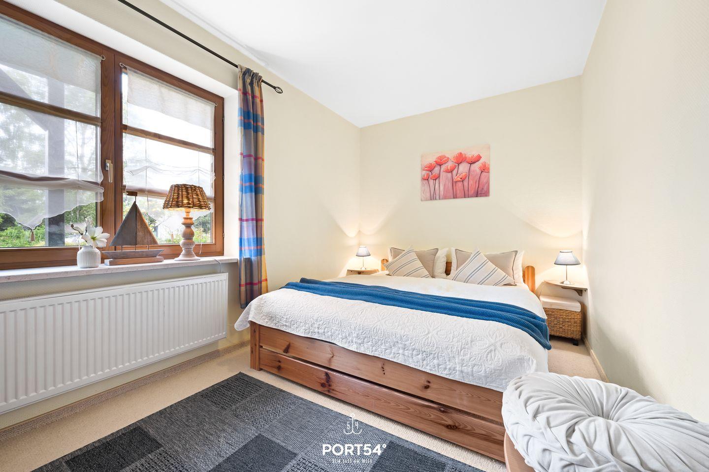 In der Wohnung erwarten Sie zwei komfortable Schlafzimmer mit einem gemütlichen Teppichboden und Platz für eine angenehme Nachtruhe. Das moderne Badezimmer ist mit einer Dusche und einer separaten Badewanne ausgestattet – ideal für eine wohlverdiente Auszeit nach einem Tag am Strand oder in der Natur.