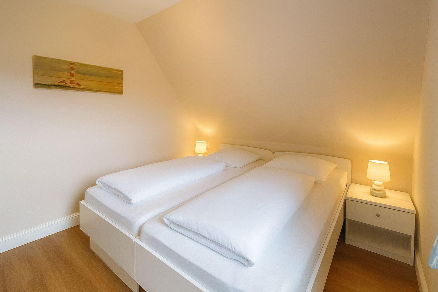 Die offene Küche ist komplett ausgestattet und lässt keine Wünsche offen, mit modernen Geräten wie einem 4-Felder-Herd, einem Backofen, einer Mikrowelle und einem Geschirrspüler. Im Obergeschoss befinden sich zwei großzügige Schlafzimmer – mit je einem großzügigen Doppelbett . Das helle Tageslichtbad bietet hohen Komfort mit einer geräumigen Dusche.