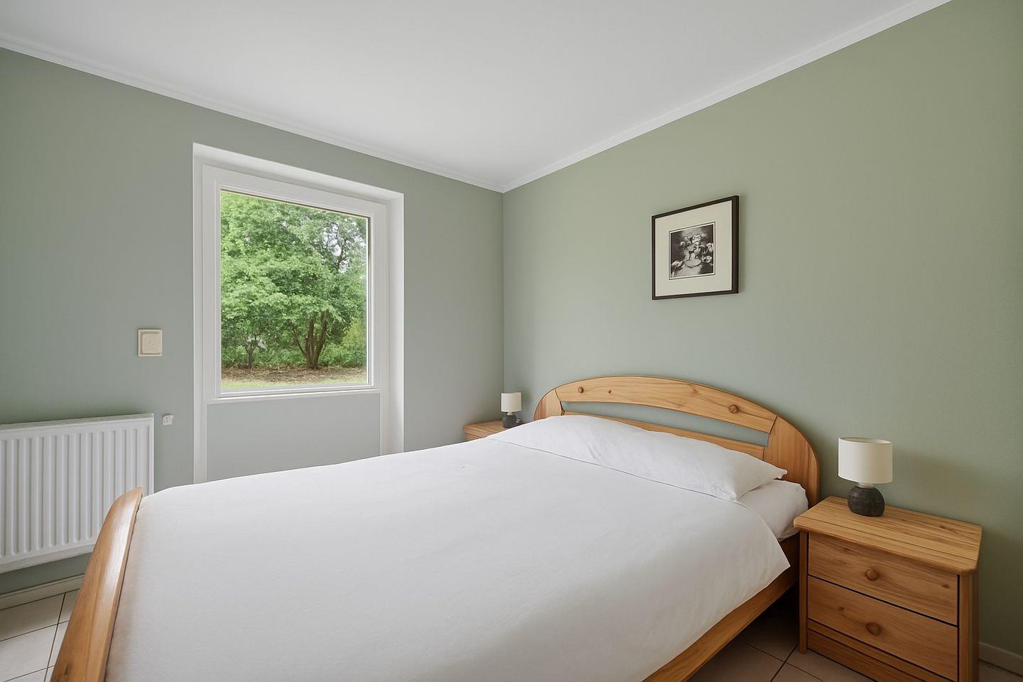 Über eine Holztreppe gelangen Sie in das Obergeschoss. Ein Schlafzimmer mit einem Doppelbett (1,80 x 2,00) ist ausgestattet mit einem großen Kleiderschrank. Darüber hinaus befindet sich im Obergeschoss ein weiteres Bad mit Dusche.