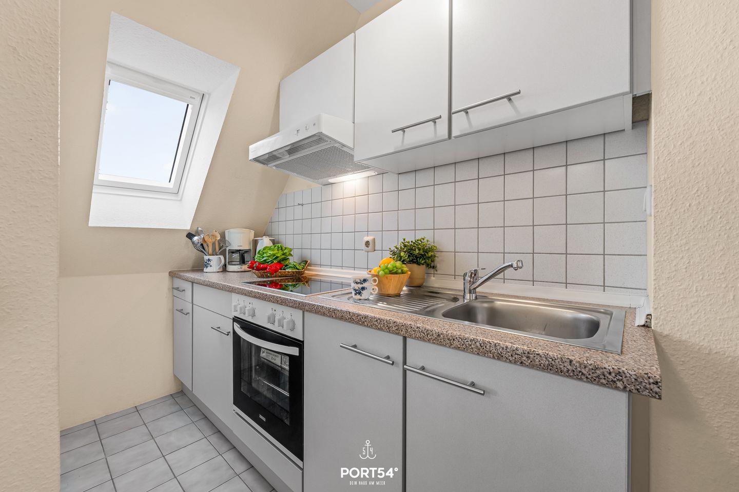Die offene Küche ist umfangreich ausgestattet und lässt keine Wünsche offen: Zu den zahlreichen Annehmlichkeiten zählen ein Ceranherd, Backofen mit Elektroanschluss, Mikrowelle, Kühlschrank mit integriertem Gefrierfach, Kaffeemaschine, Wasserkocher, Toaster und sogar ein Sandwich-Toaster. Geschirr, Besteck und sämtliche Küchenutensilien sind ebenso vorhanden wie ein Staubsauger. Somit steht einer rundum gelungenen Selbstversorgung nichts im Wege.