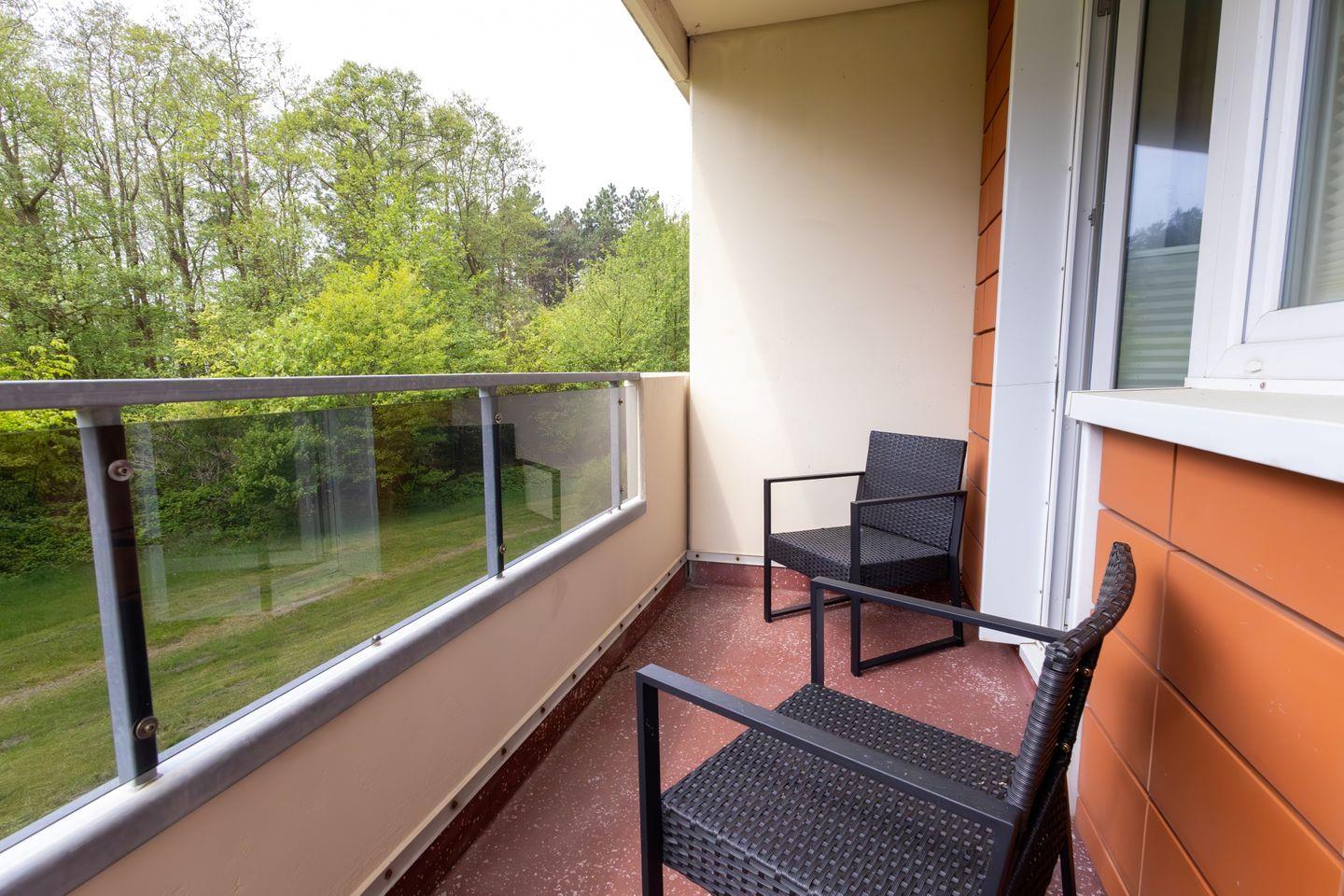 Der sonnige Süd-West Balkon lädt mit seinem Blick ins Grüne zum gemütlichen Verweilen im Freien an.