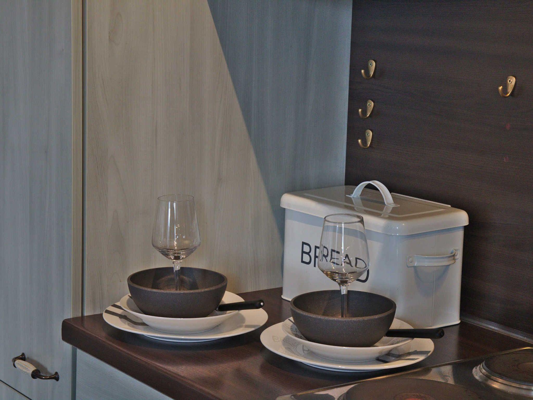Die Wohnung ist vollausgestattet, über edle Weingläser, über das Salatsieb bis hin zum Gurkenschäler ist alles vorhanden aber vor allem bieten wir Aussicht und Ambiente.