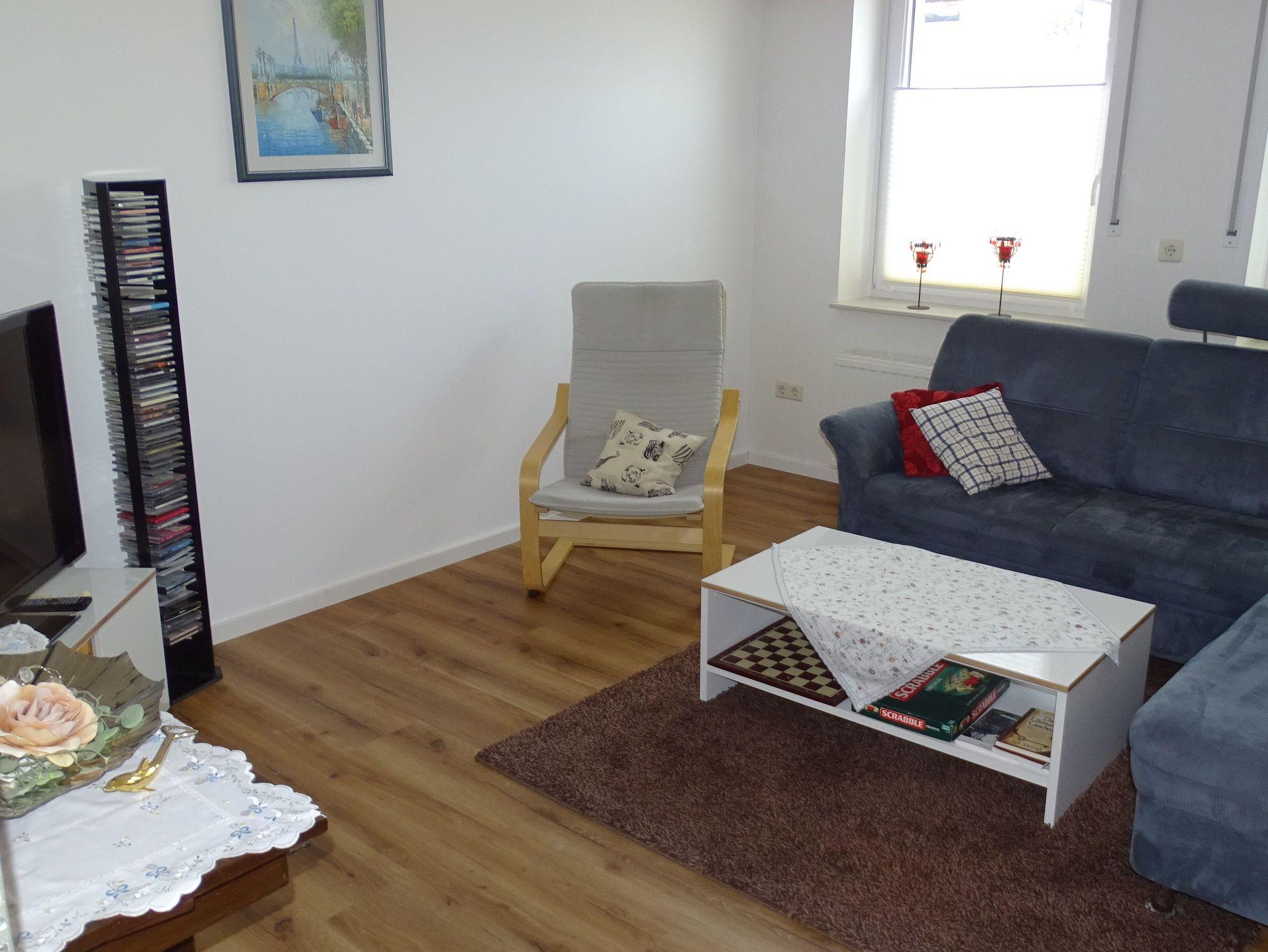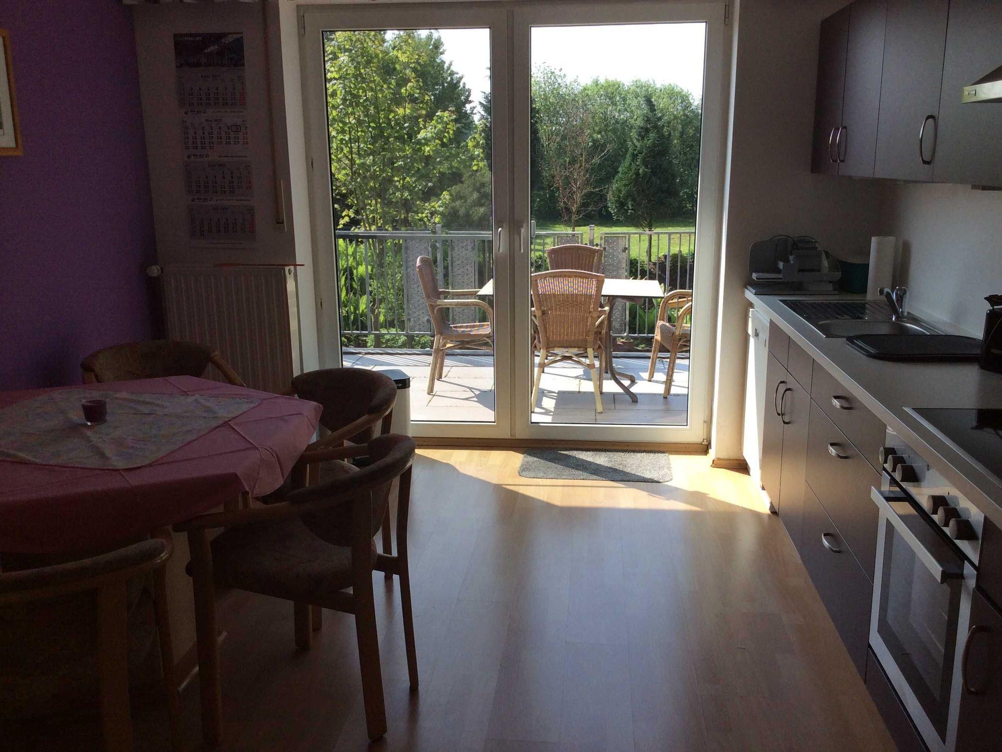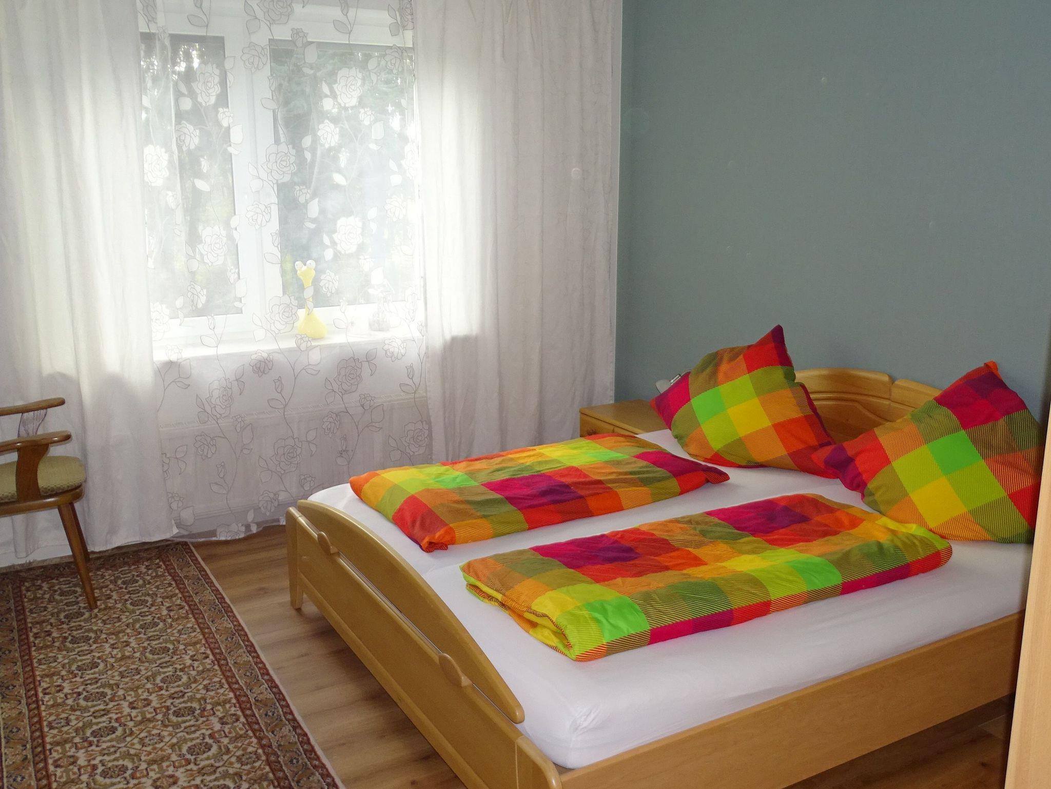 Frisch Renoviert! Die Wohnung ist gemütlich mit Blick ins Grüne auf die Felder. Parkplatz direkt vor dem Haus. Spiele, Bücher, Handtücher, Bettwäsche und W-Lan vorhanden. Wir geben gerne Hinweise und Tipps für Ausflüge in der Umgebung; mit dem Rad oder zum Wandern. Wir haben im Ort ein Freibad (Entfernung 500m) und einen Badesee (Entfernung 1500m). Einkaufsmöglichkeiten in 3min Fußweg erreichbar. Du hast eine separaten Zugang zur Wohnung durch den Hausflur. Die Wohnung befindet sich in der ersten Etage.