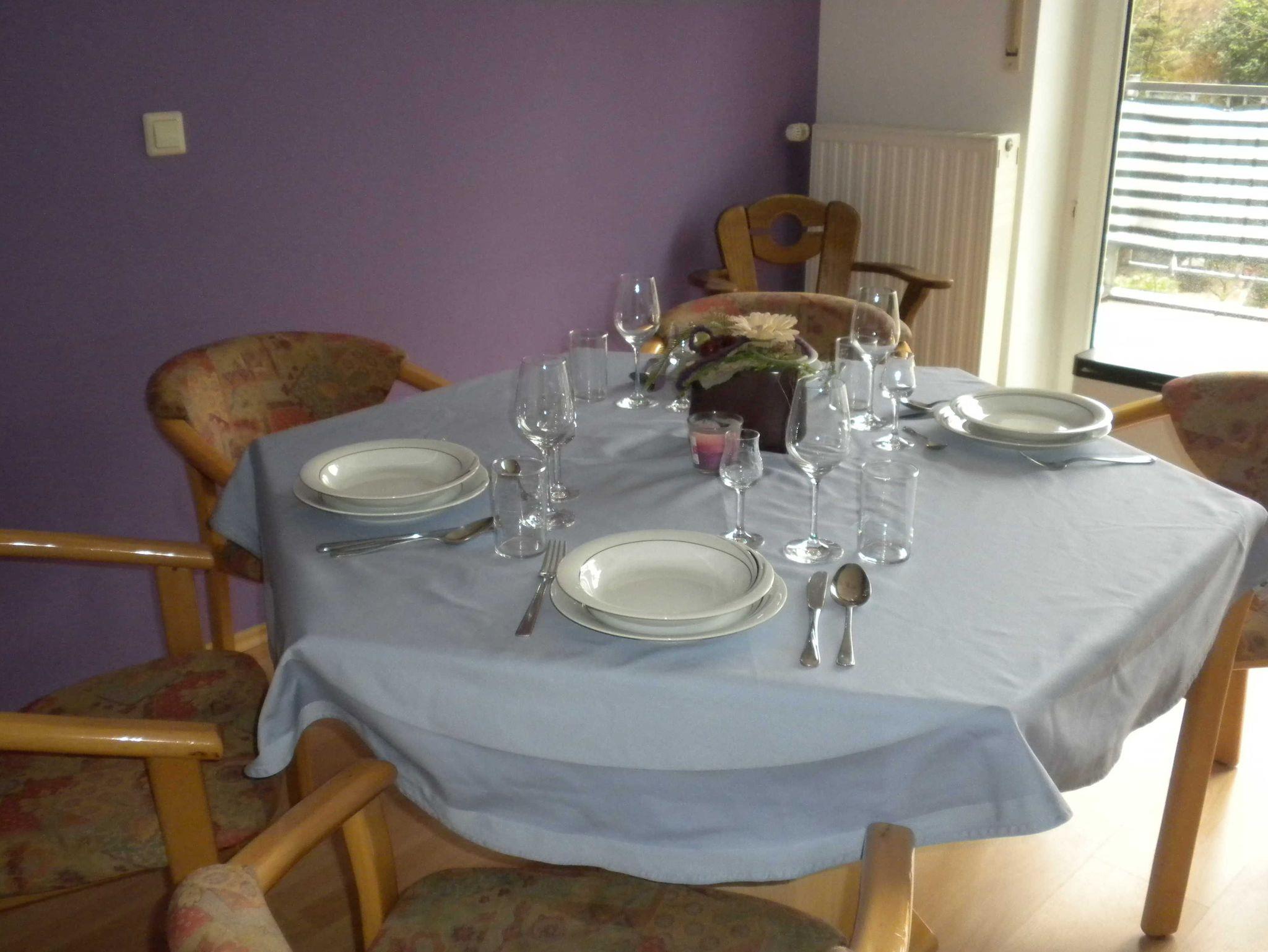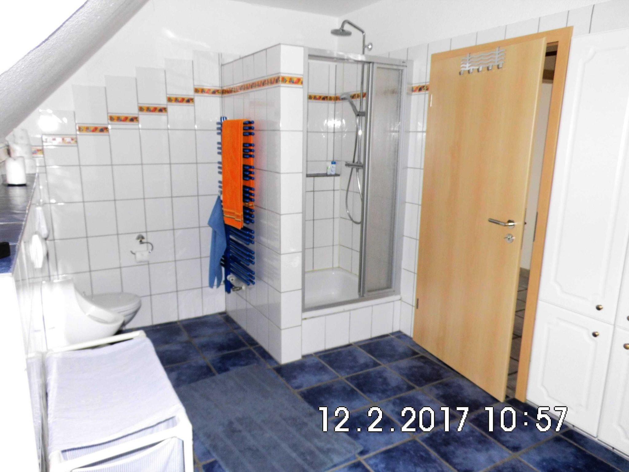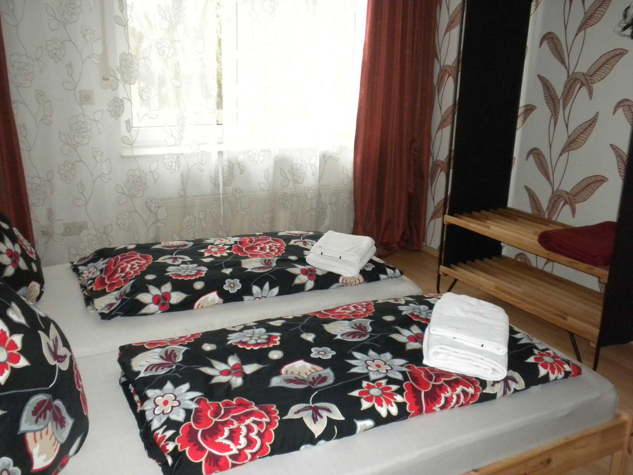 Frisch Renoviert! Die Wohnung ist gemütlich mit Blick ins Grüne auf die Felder. Parkplatz direkt vor dem Haus. Spiele, Bücher, Handtücher, Bettwäsche und W-Lan vorhanden. Wir geben gerne Hinweise und Tipps für Ausflüge in der Umgebung; mit dem Rad oder zum Wandern. Wir haben im Ort ein Freibad (Entfernung 500m) und einen Badesee (Entfernung 1500m). Einkaufsmöglichkeiten in 3min Fußweg erreichbar. Du hast eine separaten Zugang zur Wohnung durch den Hausflur. Die Wohnung befindet sich in der ersten Etage.