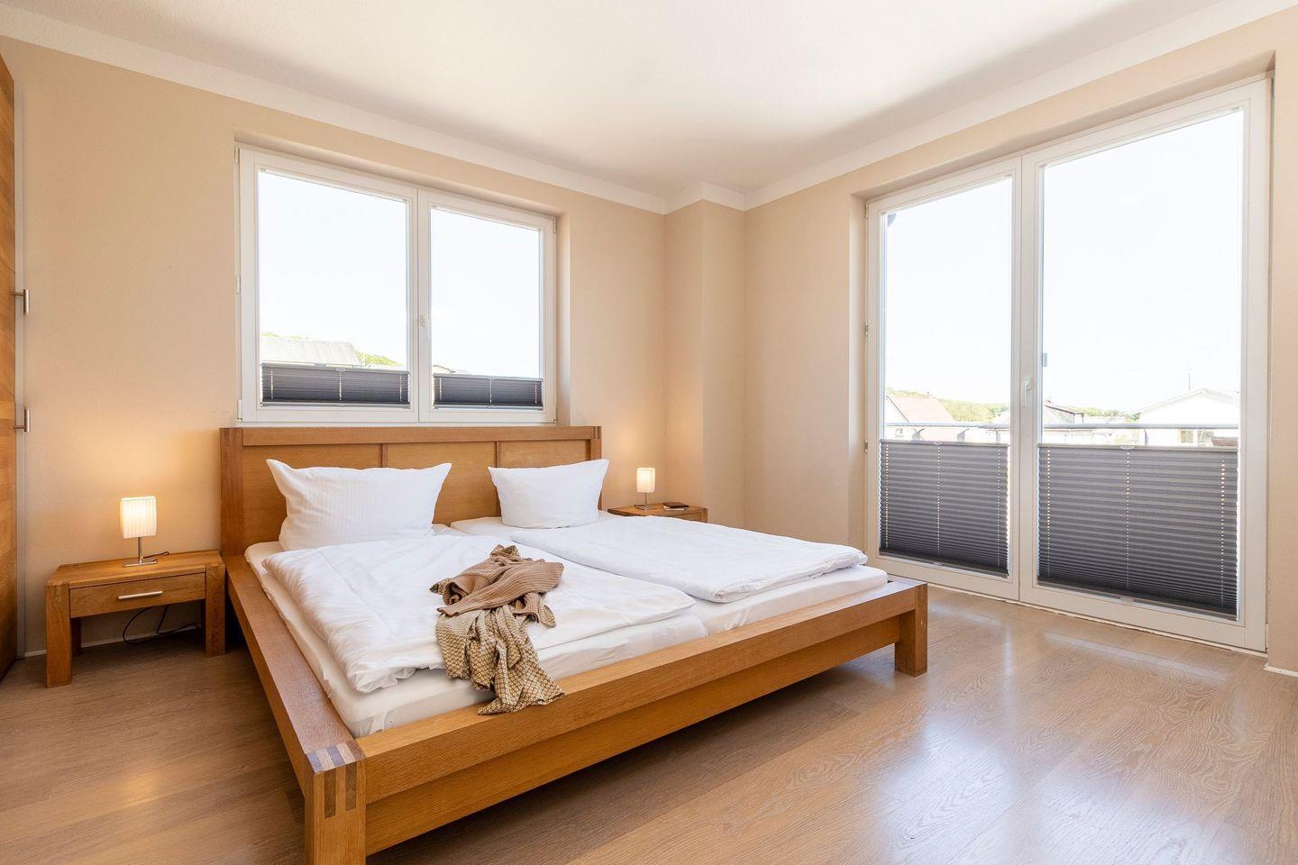 Unsere Gäste haben Zugang zur gesamten Ferienwohnung inklusive Wohnzimmer, zwei Schlafzimmern mit Balkon und Meerblick, dem großzügigen Badezimmer mit Dusche und Badewanne sowie einem separaten WC im Saunabereich.