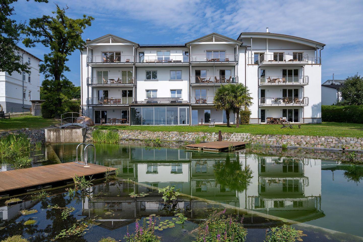 - einen natürlichen Schwimmteich mit Blick auf die Ostsee
