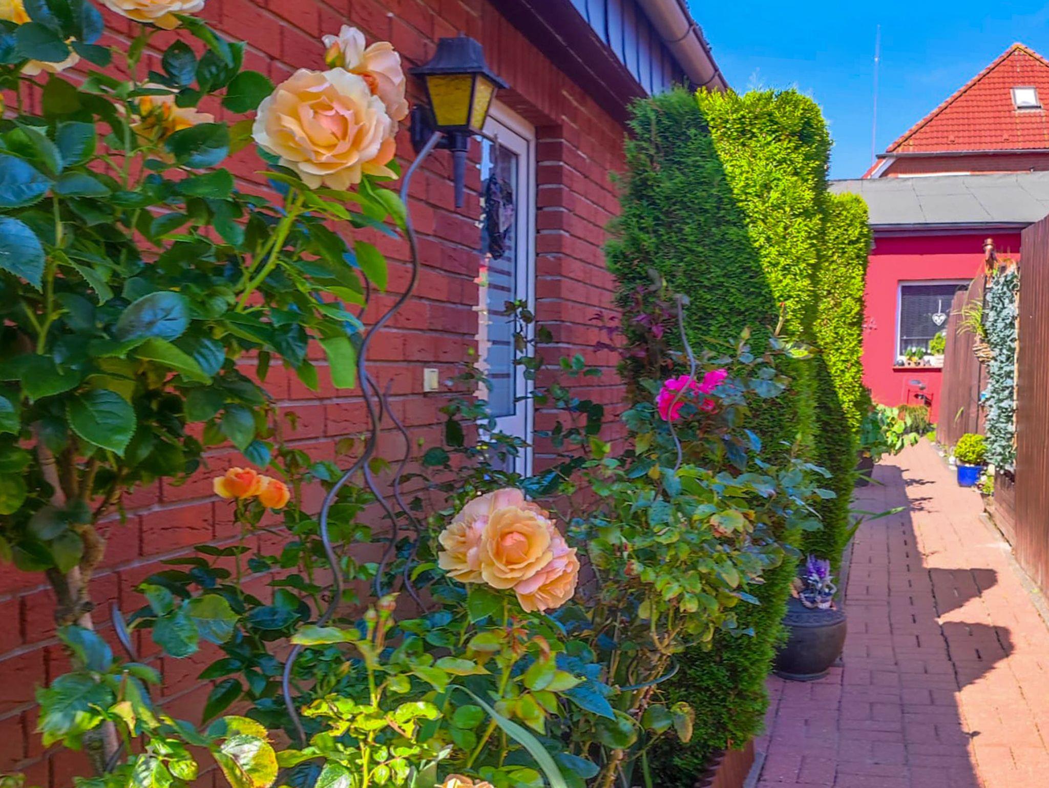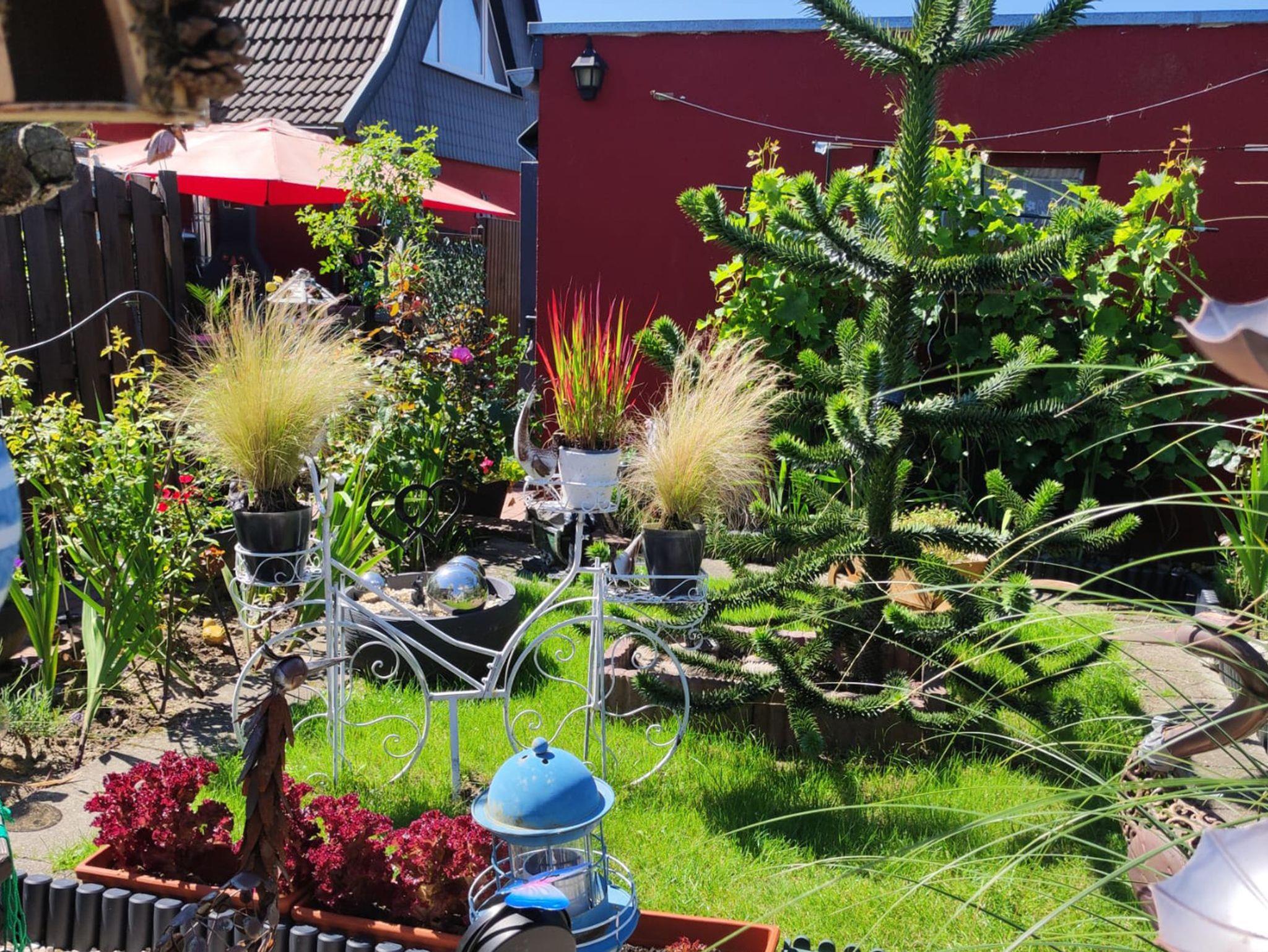 - Vor dem Feriendomizil ist ein hübsch dekorierter Garten mit möblierter Terrasse. Eine Hollywoodschaukel, Tisch/Stühle, Grill sowie ein Strandkorb nicht zur Verfügung.