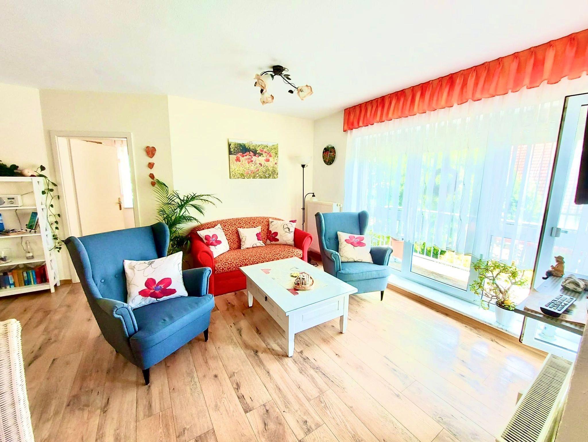 Ferienwohnung Mohnblume, Sassnitz. Diese Komfort-Ferienwohnung befindet sich in bevorzugter Lage am Hochufer im ersten Stock eines gepflegten Apartmenthauses in ruhiger Lage aber sehr Zentral. Sie verfügt über einen großen lichtdurchfluteten Wohnraum mit 2 gemütlichen Sofas, und einem Sessel, die zum Sat.- Fernsehen oder zum Musikhören einladen,oder gehen sie von hier auf den Balkon mit schönen Holzmöbeln Sitzkissen und Sonnenschirm und geniessen zb. leckeren Fisch den sie gerade am Hafen direkt vom Fischer geholt haben und in der kompletten Einbauküche mit allem Komfort , wie Geschirrspüler,Mikrowelle,Ceranfeld,Kühl-Gefrierkombi usw mit Freude zubereiten können.Angrenzend ist der Esstisch mit 4 gemütlichen Stühlen.Die Nacht geniessen sie im grosszügigen Schlafzimmer mit Doppelbett und 2. Balkon und im zweiten Schlafzimmer mit 2 Einzelbetten.Im Bad erwartet sie zum Entspannen eine Wanne. Auch ihr Auto hat einen eigenen PKW-Stellplatz auf dem Hof. Fahrradständer vorhanden. Bettwäsche inklusive. Handtücher bitte selbst mitbringen.