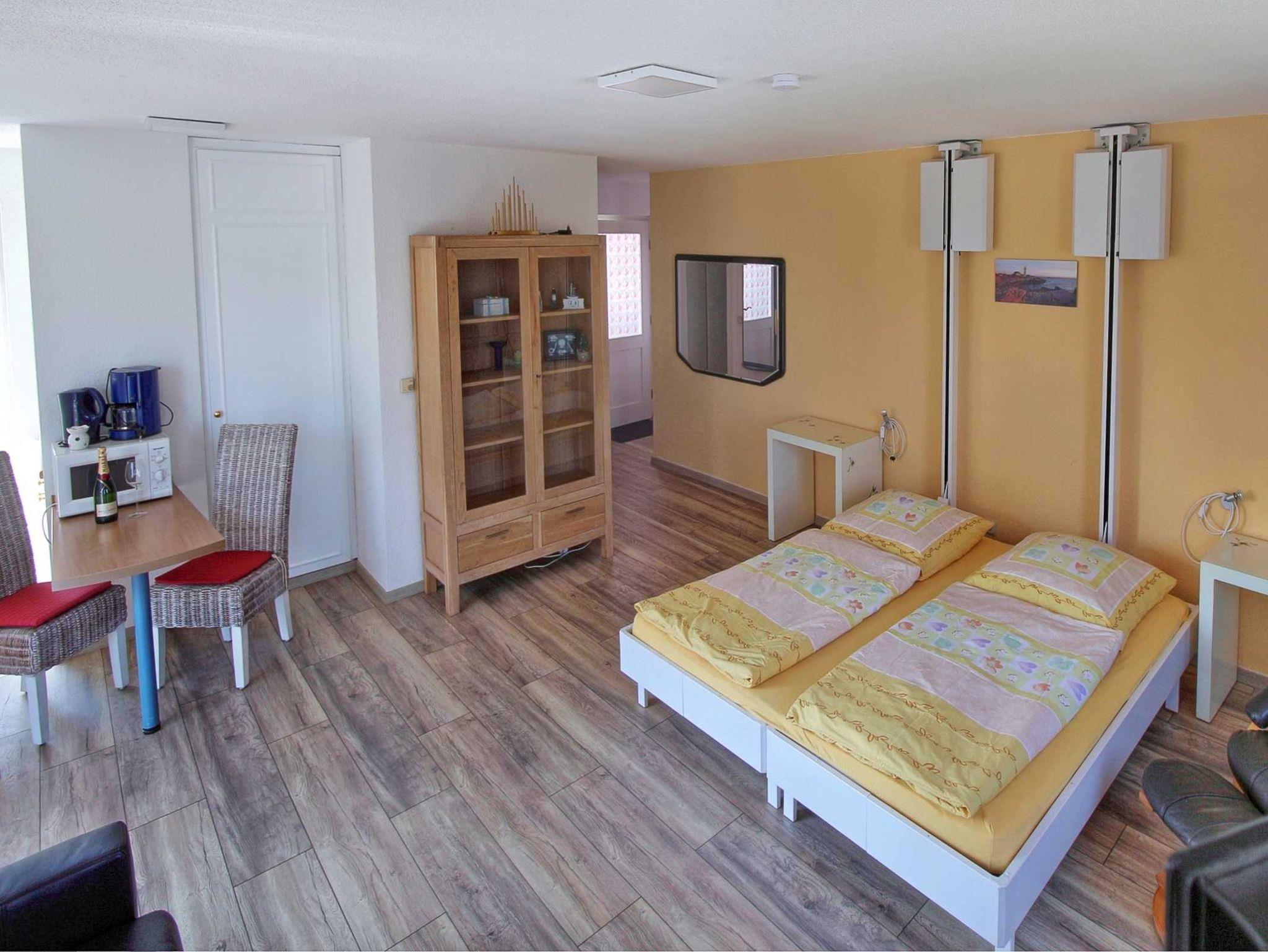 Das helle und freundlich eingerichtete 1-Raum-Appartement hat eine Größe von ca. 45 qm und befindet sich im 1. Obergeschoss der Villa Monika. Es besteht aus einem kombinierten Wohn-Schlafraum, einer kleinen Küchenzeile, einer Essecke und einem Bad mit Dusche/WC. Eine Besonderheit dieses Appartements ist das Elevator-Bett, welches mit einem einfachen Handgriff unter die Zimmerdecke gehoben werden kann, um so mehr Platz zu schaffen.