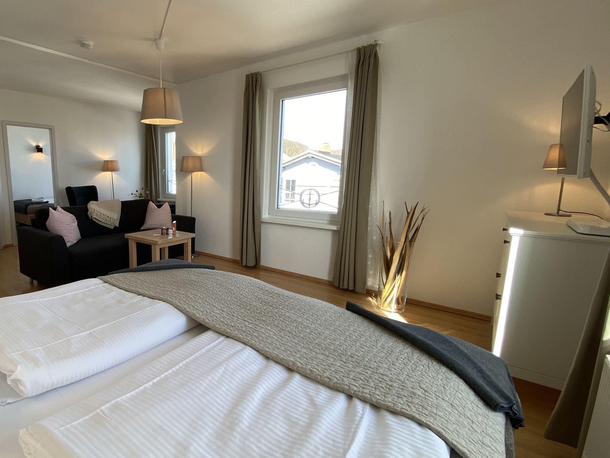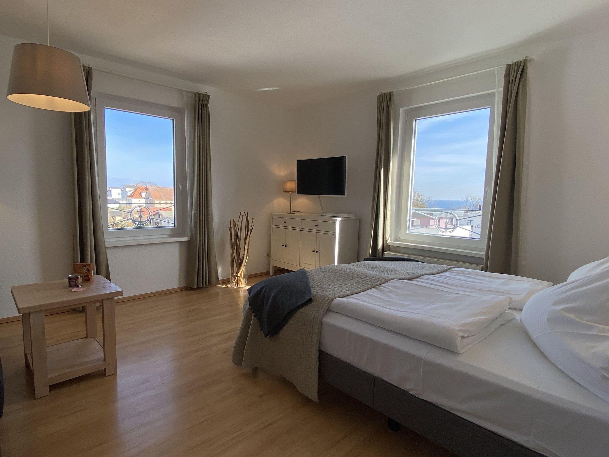 2 Raum-Ferienwohnung mit Ostseeblick, Nichtraucher, für bis zu 4 Erwachsene und bis zu 2 Babybetten, gelegen im zweiten Obergeschoss.