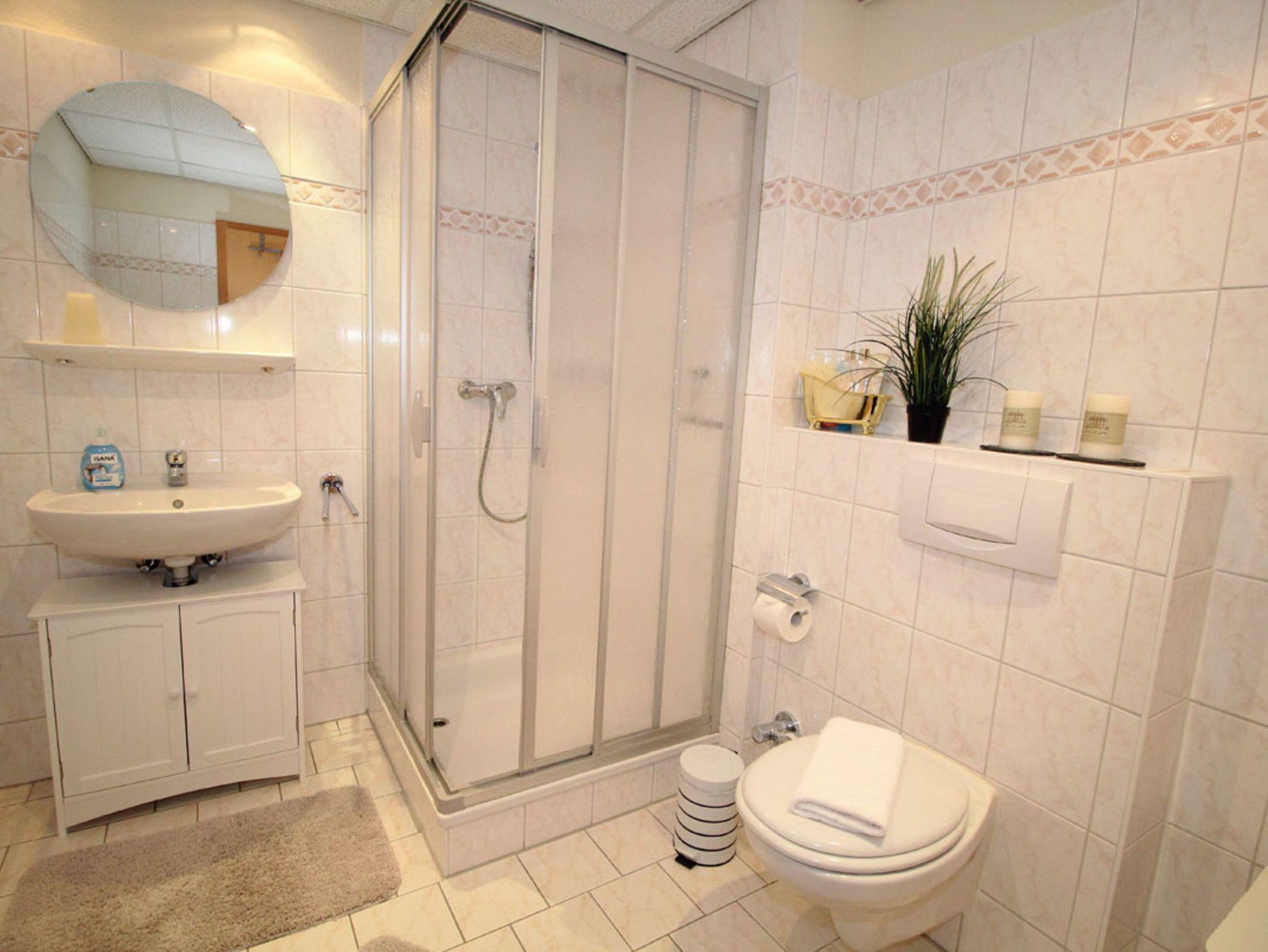 • Das Bad ist mit Dusche, WC und Fön ausgestattet. Pro Person liegen für Sie ein großes und ein kleines Handtuch bereit.