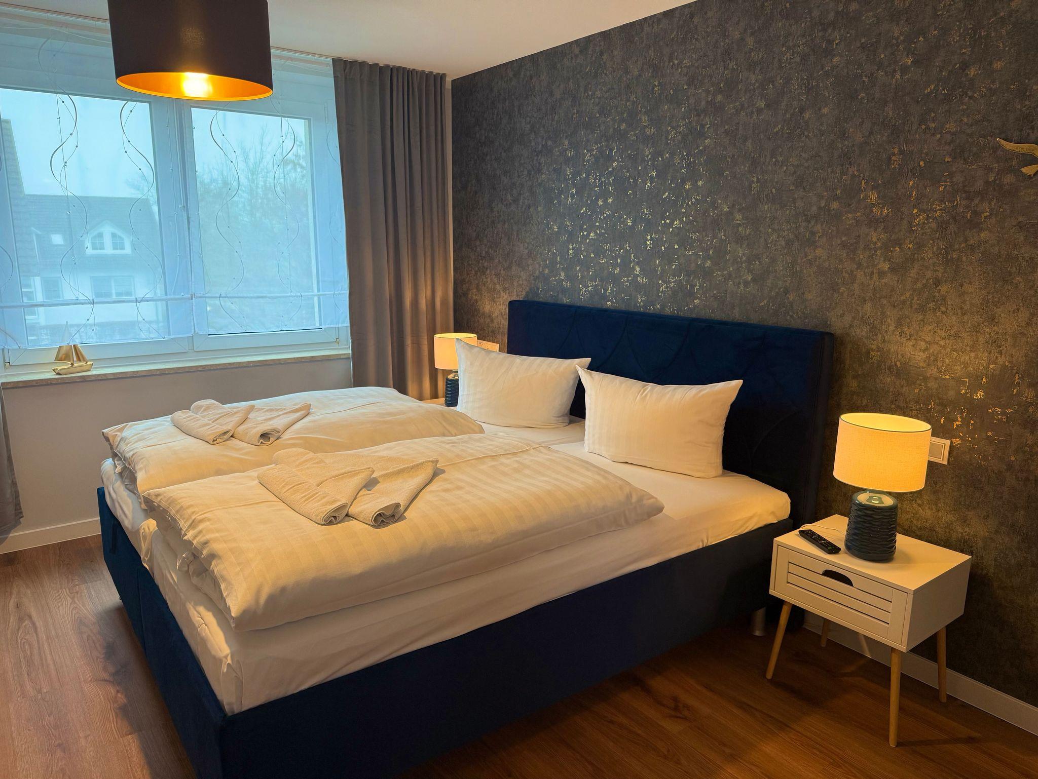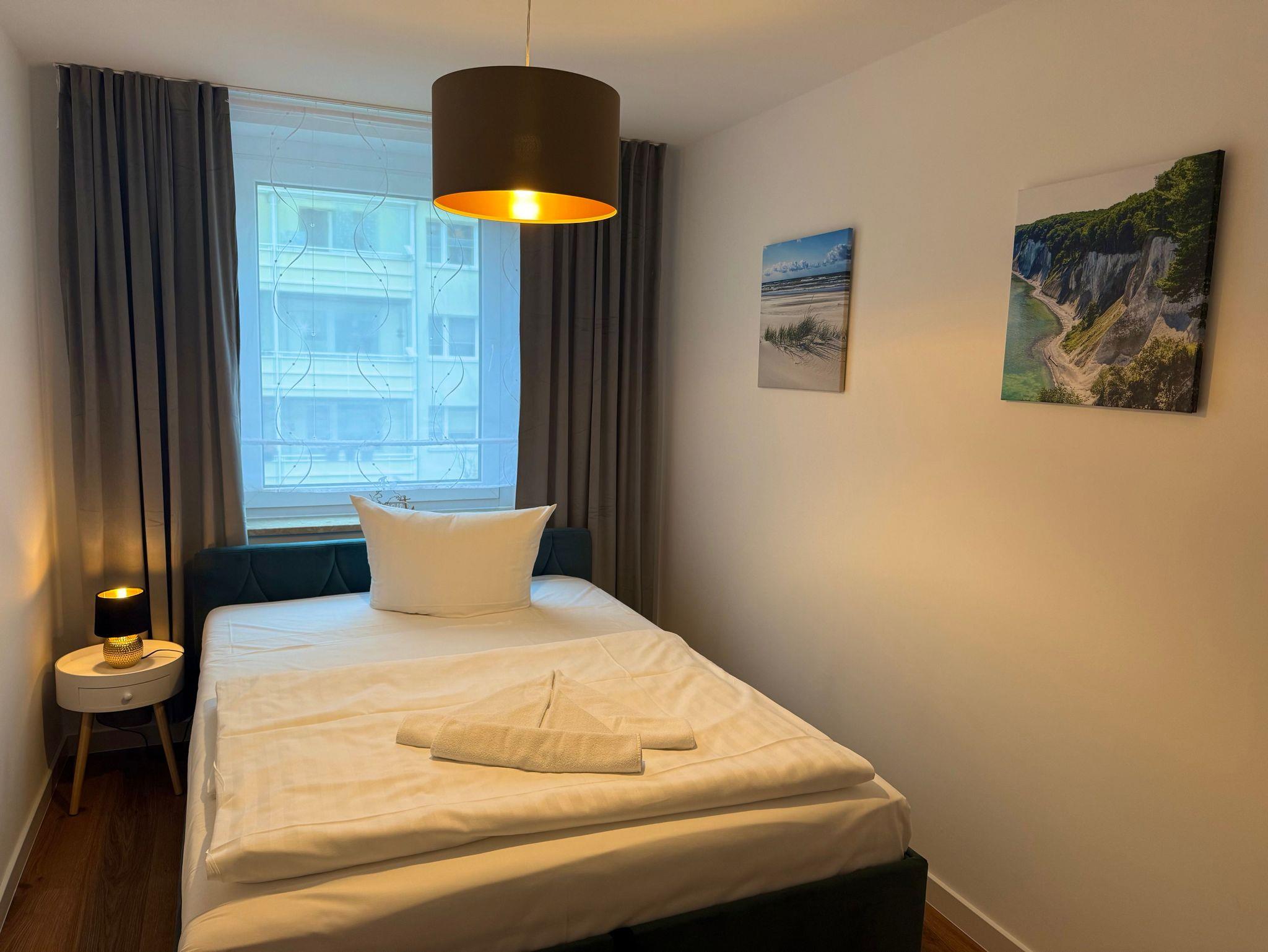 Das neuwertige Appartement verfügt über ein großzügiges Wohnzimmer, eine voll ausgestattete Küche mit FLAT-TV, zwei elegante Schlafzimmer und ein schönes Badezimmer mit Berker Internet Radio und Lautsprechern.