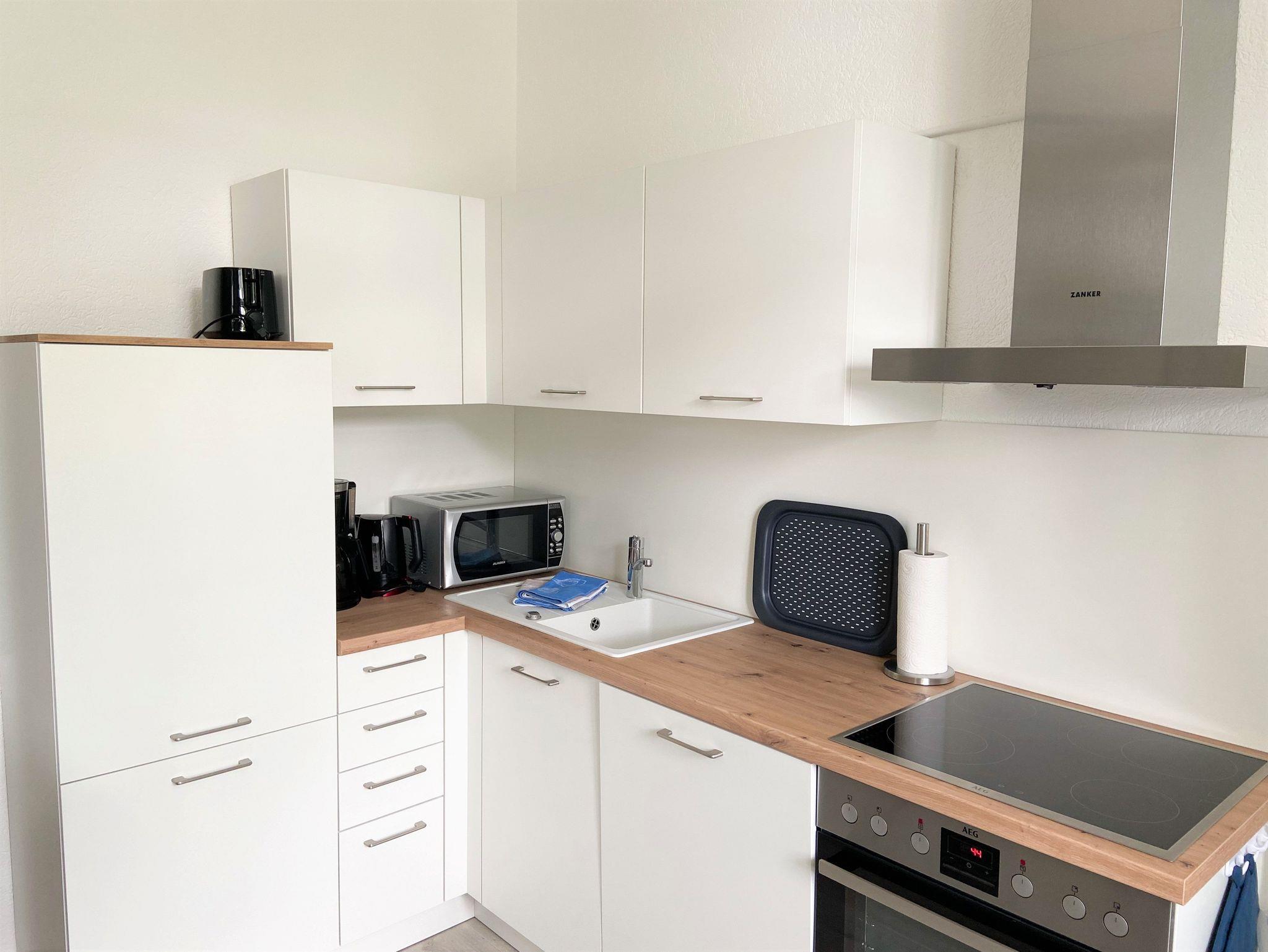 Die im maritimen Stil eingerichtete, gemütliche 2-Zimmer Ferienwohnung begrüßt Sie mit einem großzügigen Wohn- Essbereich. Eine praktisch eingerichtete Küchenzeile lädt Sie ganz nach Lust und Laune zum Kochen ein.
